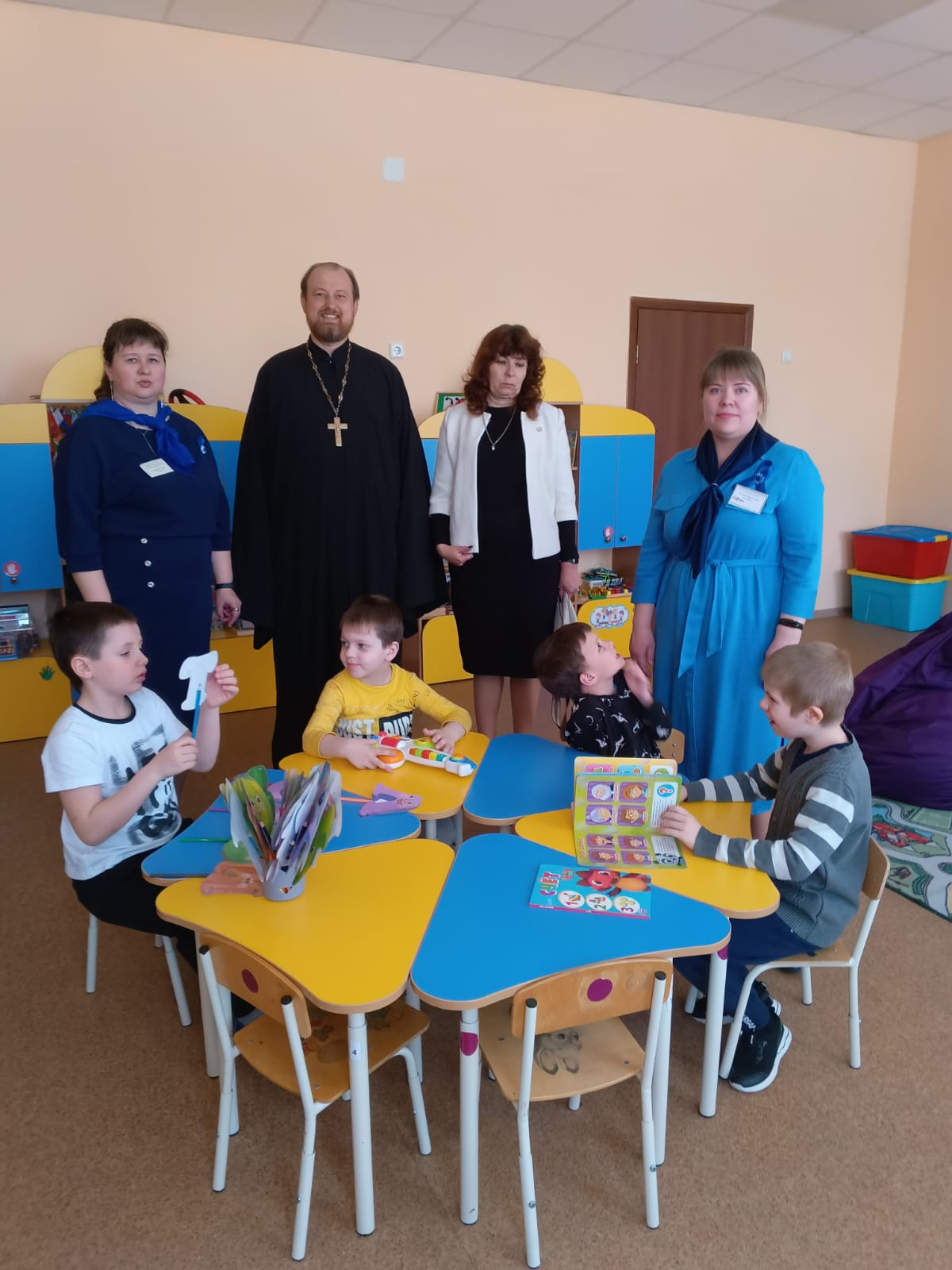 4 апреля в рамках Всероссийской недели распространения информации об аутизме детский сад МАДОУ ЦРР д/с №1 «Глория» снова встречал гостей. На День открытых дверей пришли родители и дети с других дошкольных учреждений города. Весте с ними в гости к деткам пришел протоиерей Роман Амплеев, настоятель Донского храма, благочинный приходов Новошахтинского округа и его помощник Саханина Инна Викторовна. Они подарили подарки, побеседовали с заведующий детского сада Сорокиной Еленой Николаевной, родителями и воспитателями. Посетили группы для детей с РАС, поиграли с ними и попробовали поработать на новейшем оборудовании и тренажерах, а воспитанники показали свои умения.
