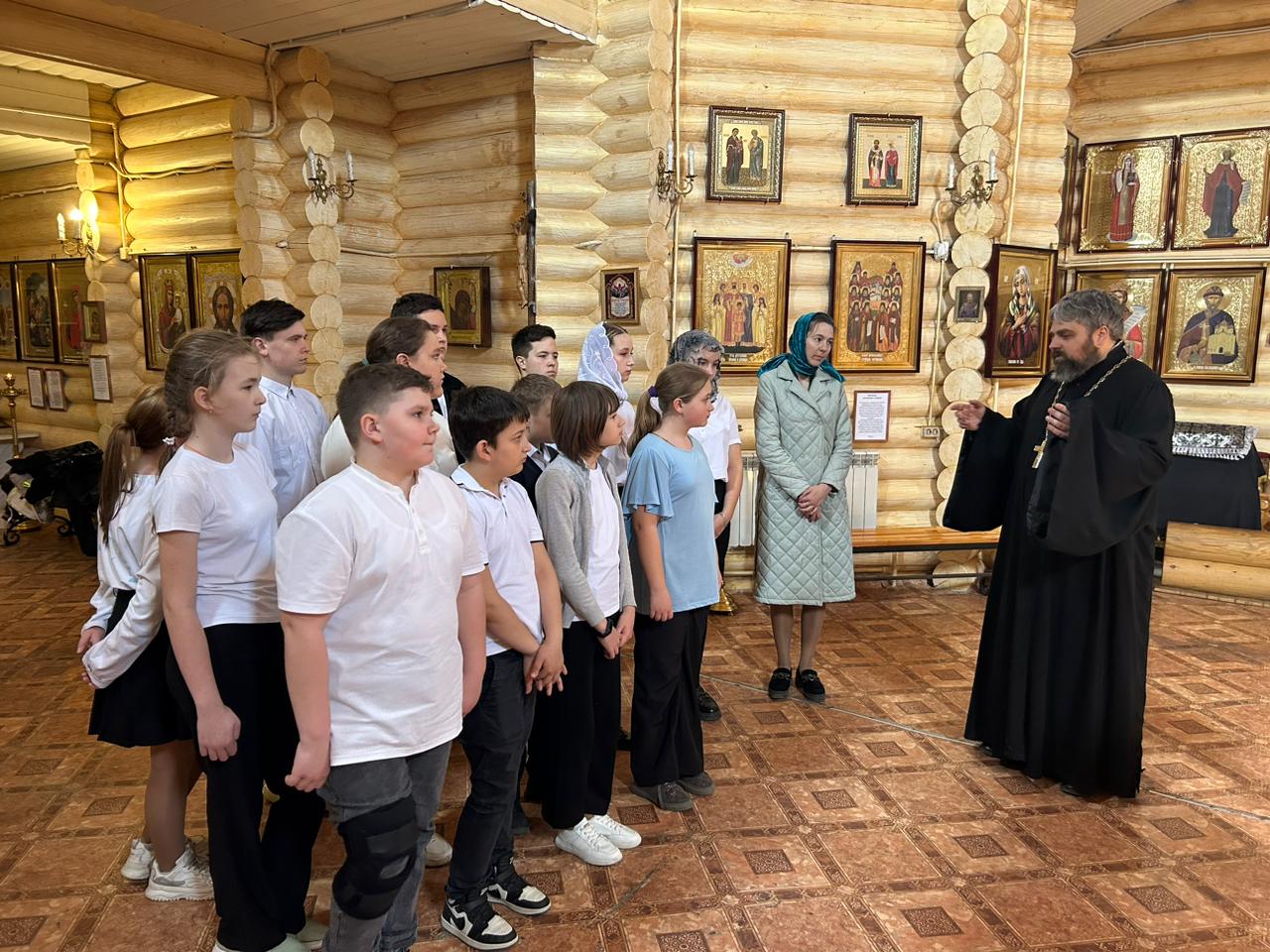 Отец Виктор из своего опыта рассказал школьникам об особенностях служения священника, о церковных Таинствах, об истории храма и о времени Великого поста. Также он призвал их к усердию в учёбе для развития своих талантов, послушанию и молитве за родителей, воинов и страну.