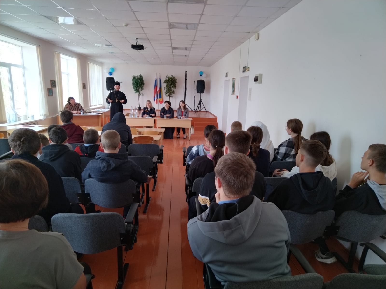 В беседе приняли участие настоятель храма Иоанна Предтечи ст. Боковской иерей Александр Левчик, инспектор ПДН ОП (дислокация ст. Боковская) МО МВД РФ «Кашарский» Татьяна Владимировна Ситникова, врач психиатр-нарколог ЦРБ Боковского района Галина Ивановна Васильева, методист МБУ «РМК» Боковского района В.Г. Довгая, педагоги и обучающиеся школы (5-11 классы).
