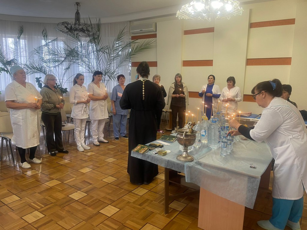 Священник отслужил водосвятный молебен, на котором молились сотрудники и посетители мед. центра.