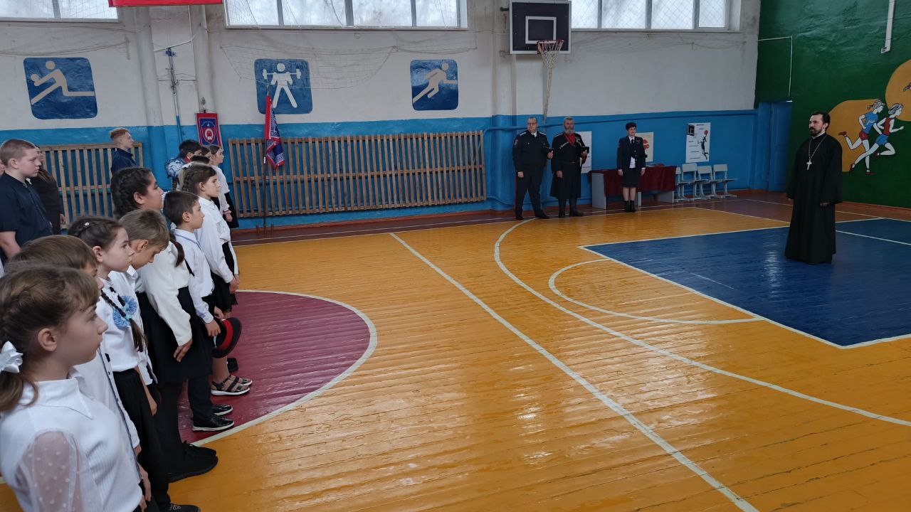 Настоятель храма Рождества Христова станицы Митякинской иерей Антоний Можаев принял участие в посвящении в казачата учеников 5 класса Митякинской средней школы.
