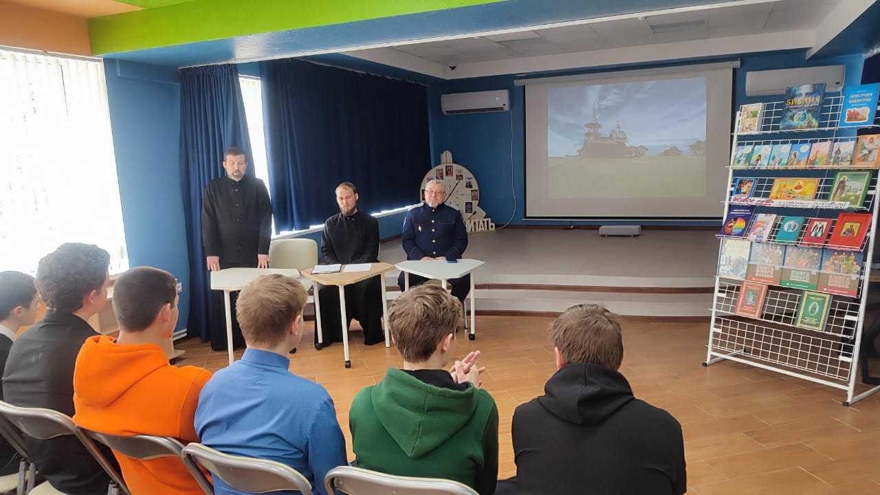 Диакон Игорь рассказал ребятам об особой роли православия в истории России, в становлении и развитии её духовности и культуры, а так же о том, что церковь и государство в единстве дополняли друг друга в воспитании благочестивого и образованного христианина, добропорядочного семьянина, трудолюбивого и патриотичного гражданина.