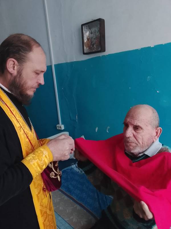 Настоятель храма святого евангелиста Иоанна Богослова хутора Красного иерей Андрей Перьков посетил пациентов хосписа — отделения сестринского ухода ЦРБ Багаевского района.