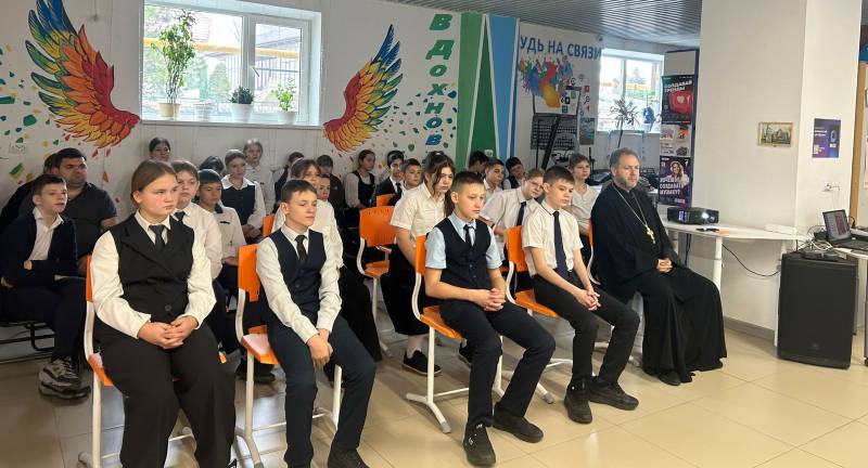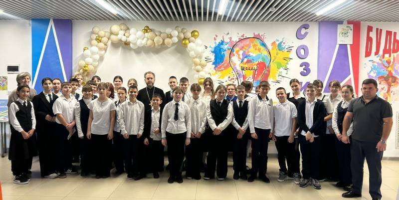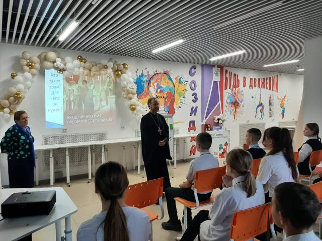 Затем Е.Б. Бурим продолжила разговор с подростками о роли храма в духовной жизни и путях роста на пути к спасению души. Протоиерей Роман подчеркнул важность как школьного, так и духовного образования для совершенствования личности и достижения жизни вечной, ответил на вопросы учащихся и пожелал им успехов в учёбе.