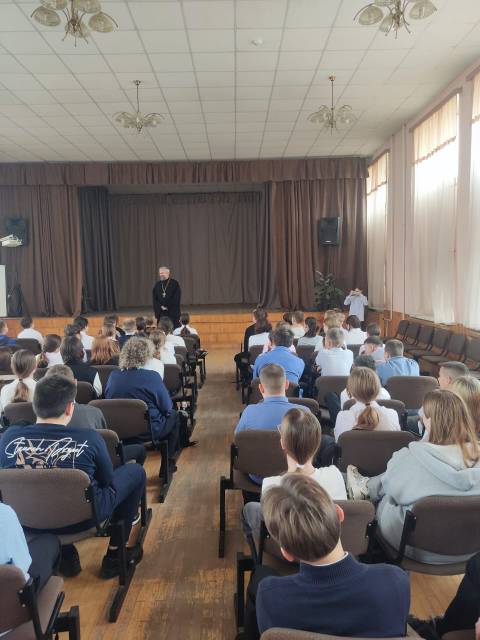 В средней школе №9 г. Каменска состоялась вдохновляющая встреча учеников со священником Антонием Грогуленко. Темой для обсуждения стала "Совесть" – внутренний голос, который направляет нас в жизни.