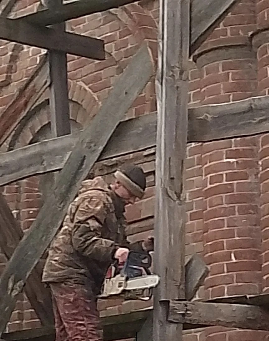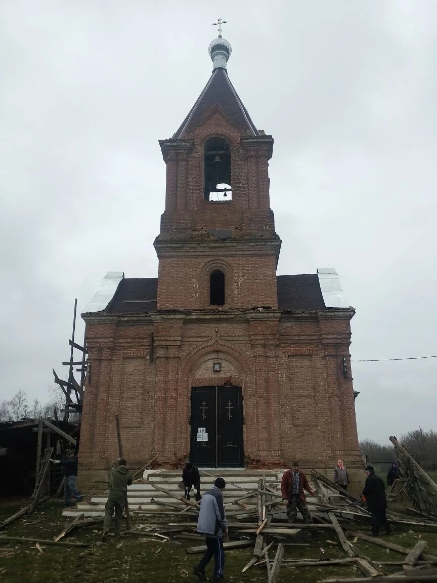В храме Архангела Михаила сл. Позднеевки после ремонтно-восстановительных работ купола, подкупольной части колокольни и крыши, произвели демонтаж строительных лесов для возвращения зданию первоначально вида.