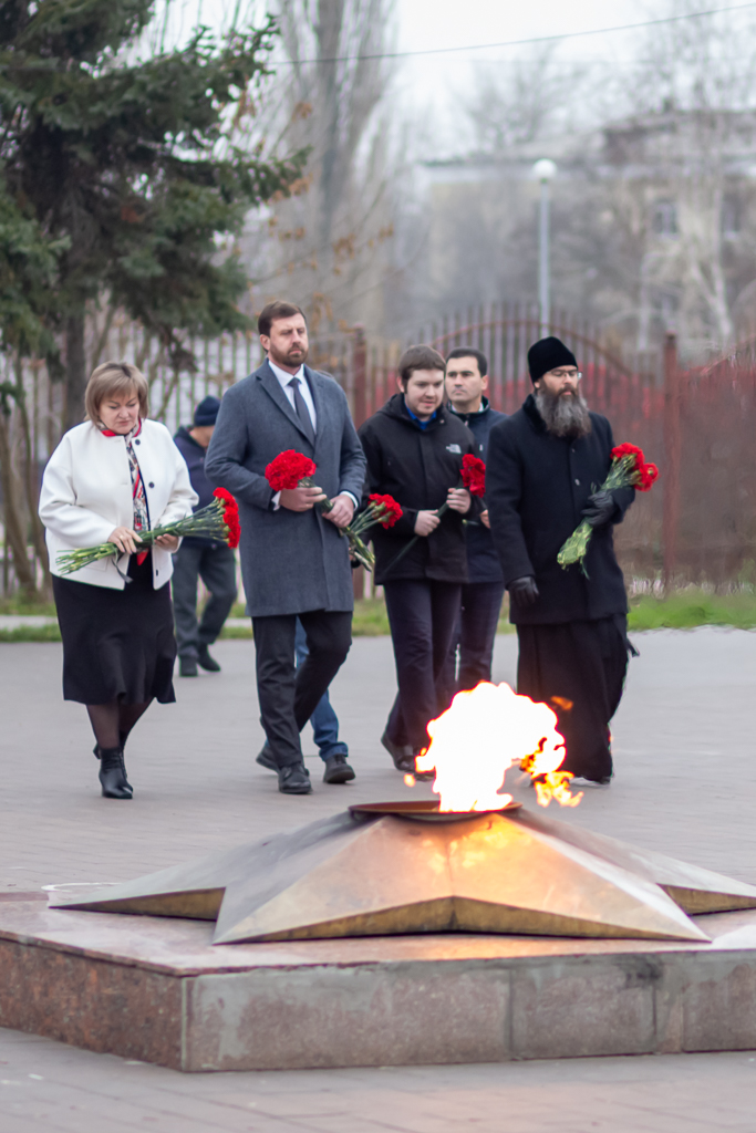 В мероприятии приняли участие глава города Людмила Овчиева, председатель городской Думы Максим Голодов, благочинный приходов Александровск-Грушевского округа иерей Александр Теличикин, заместители главы Администрации, представители Совета ветеранов и общественности. Участники почтили память безымянных героев минутой молчания, отдав дань уважения всем, кто отдал жизнь за свободу Родины.