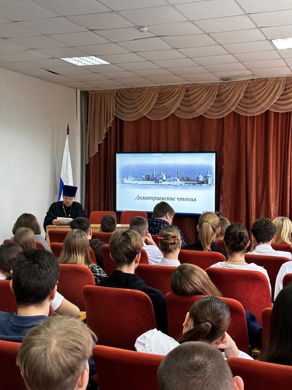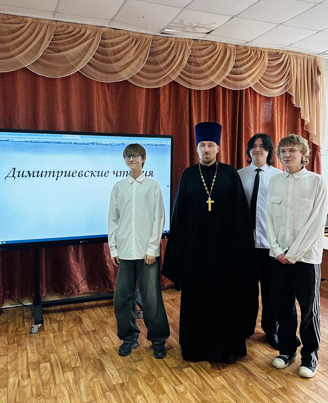 В МБОУ СОШ №2 в рамках Димитриевских образовательных чтений прошло мероприятие для учащихся 7-10 классов. Беседу с молодым поколением провел клирик Покровского храма иерей Владимир Щербаков.