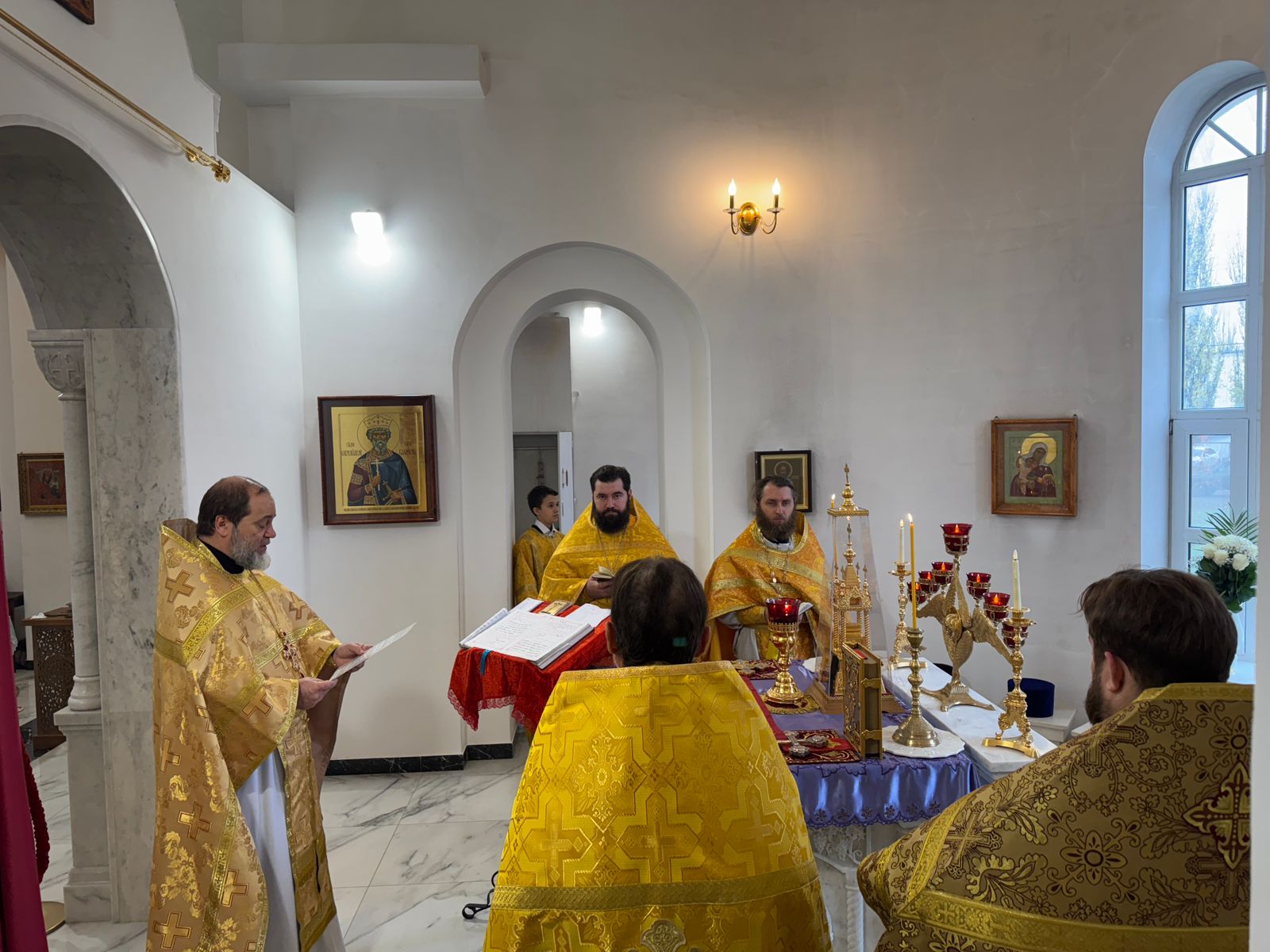 Возглавил Божественную литургию благочинный Миллеровского церковного округа, настоятель храма иеромонах Димитрий (Яроцкий). Ему сослужили настоятель храма святителя Николая Чудотвороца г. Миллерово протоиерей Сергий Курьянов, настоятель храма апостола Андрея Первозванного г. Миллерово иерей Симеон Есин, настоятель храма Успения Пресвятой Богородицы ст. Мальчевской иерей Владимир Молородов, настоятель храма Покрова Пресвятой Богородицы сл. Никольской иерей Георгий Лукащук.