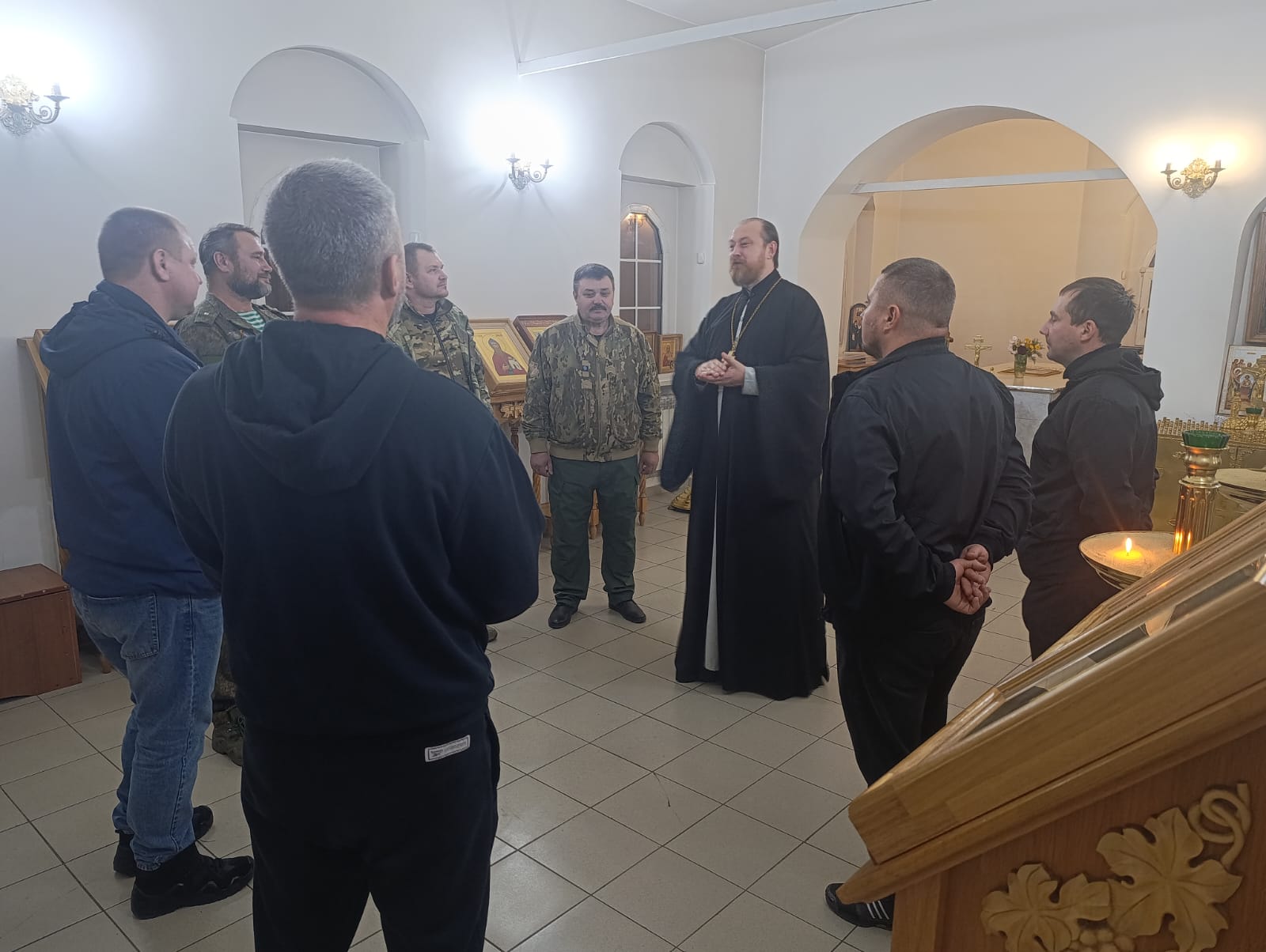 После совместной молитвы состоялась беседа о духовной жизни казака, необходимости участия в приходской жизни, исповеди и причастия.
