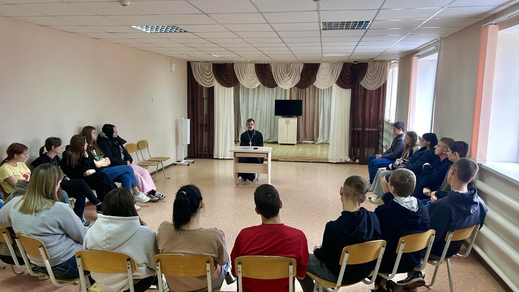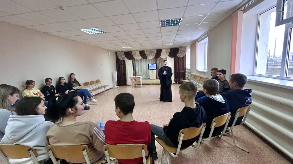 В рамках Юбилейных XXX Димитриевских образовательных чтений настоятель храма Покрова Пресвятой Богородицы ст. Каргинской иерей Борис Юров провел встречу со студентами ГБПОУ РО "КАТТ" имени В.И. Теплухина ст. Каргинской на тему "Духовно-нравственные ценности, гражданственность и патриотизм, сохранение исторической памяти".