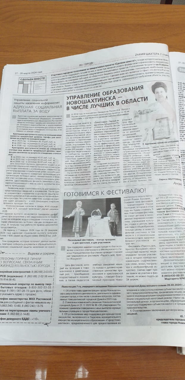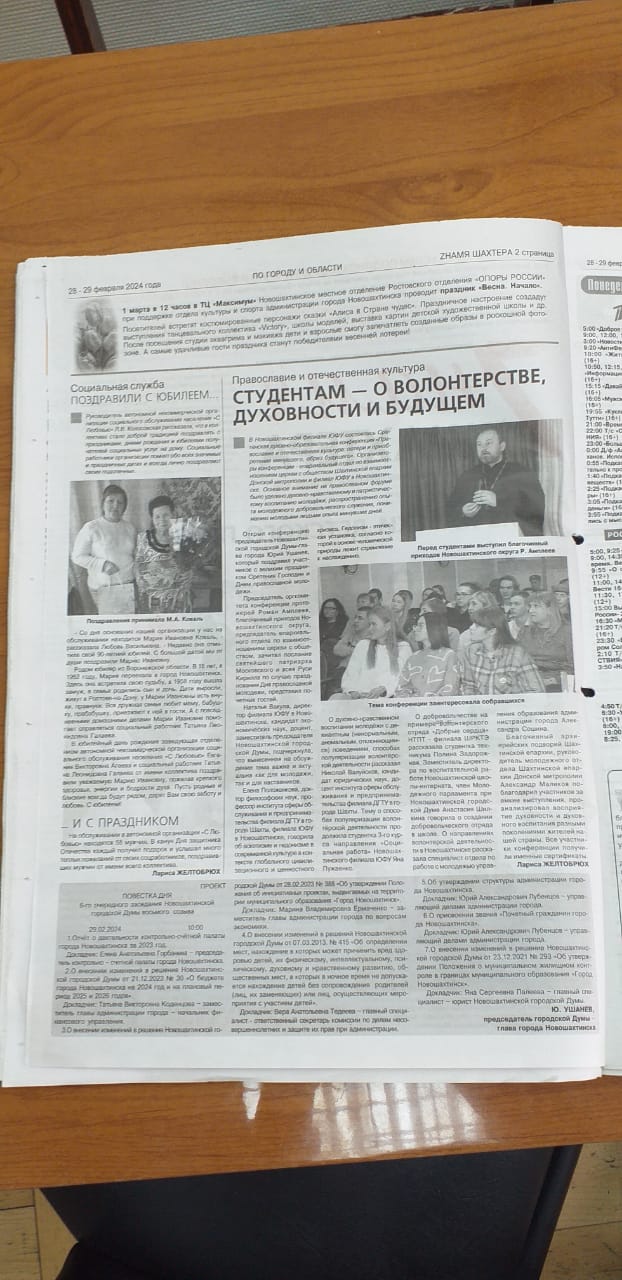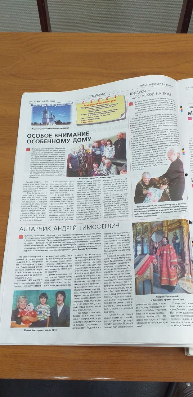 В 1 квартале 2024года продолжается сотрудничество Новошахтинского благочиния с городской общественно-политической газетой «Знамя шахтера».