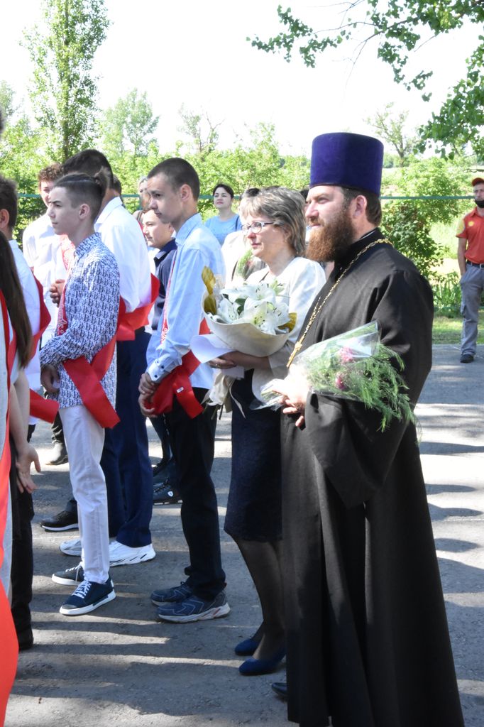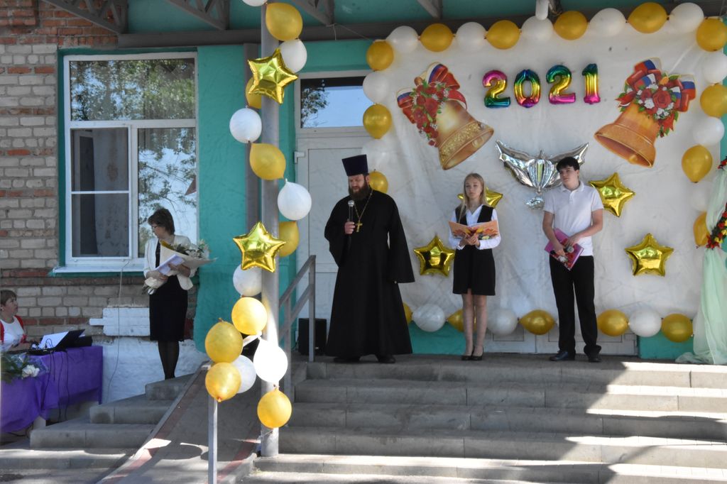 Иерей Андрей Павленков стал почетным гостем на торжественной линейке в Первомайской средней школе, посвященной последнему звонку.