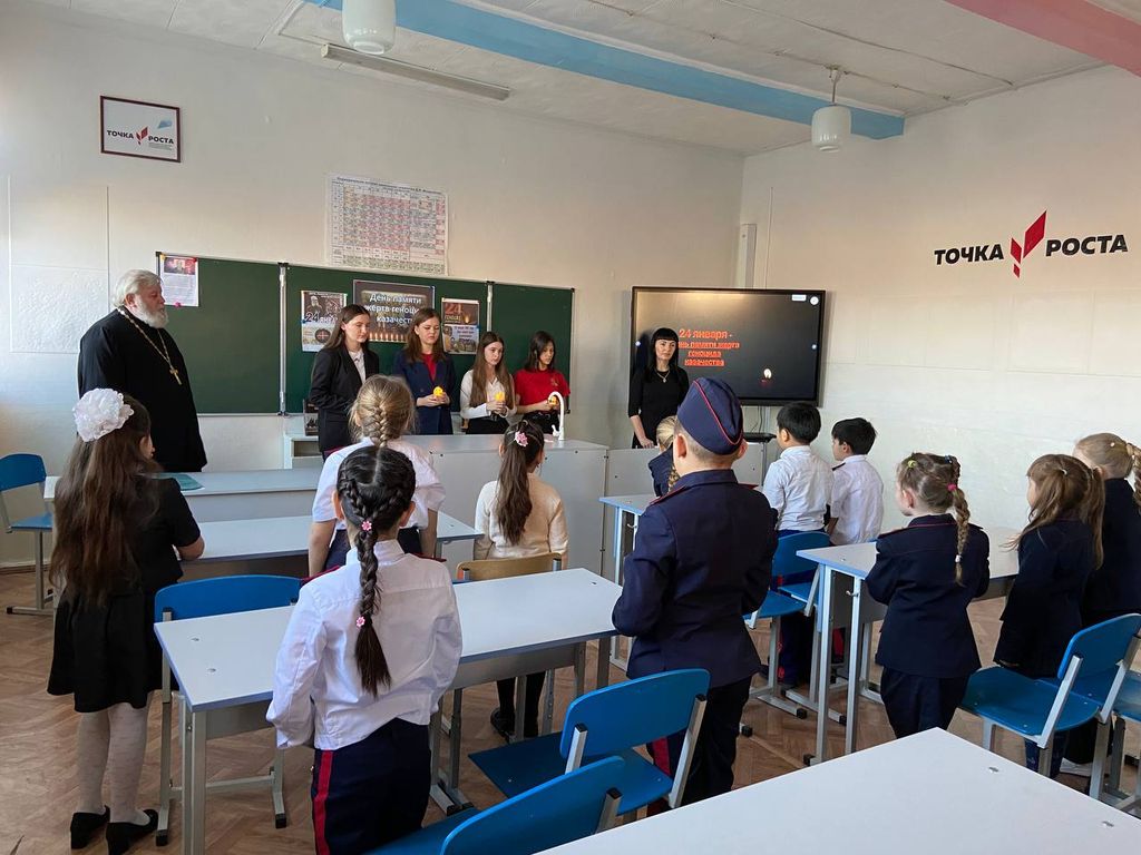 Во время мероприятия учащиеся познакомились с историей и культурой казачьего народа. Посмотрели презентацию о страшной трагедии в жизни казачества. Отец Евгений Литвиненко сказал школьникам о важности священной памяти нашего народа, так как на ней зиждется фундамент нашего Отечества.