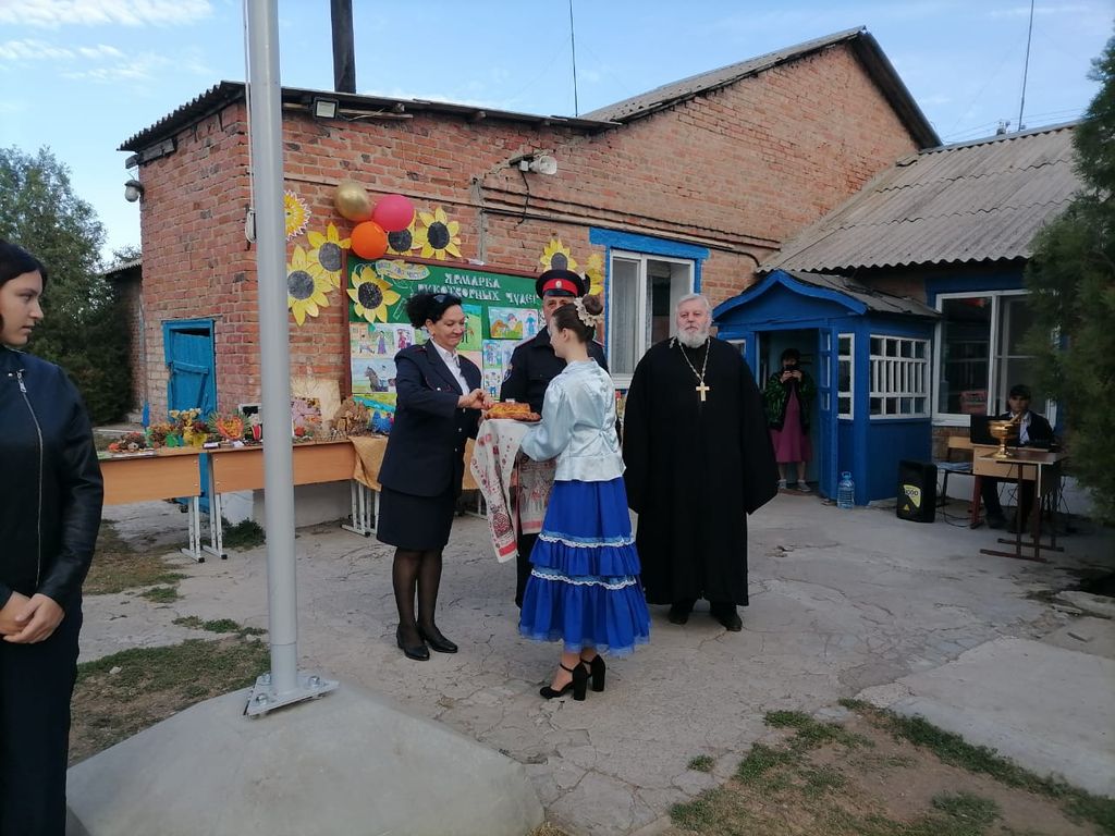 Накануне праздника Покрова Пресвятой Богородицы настоятель храма Рождества Пресвятой Богородицы х. Ажинов иерей Евгений Литвиненко принял участие в мероприятии, посвященном принятию в казачата обучающихся Карповской средней школы.
