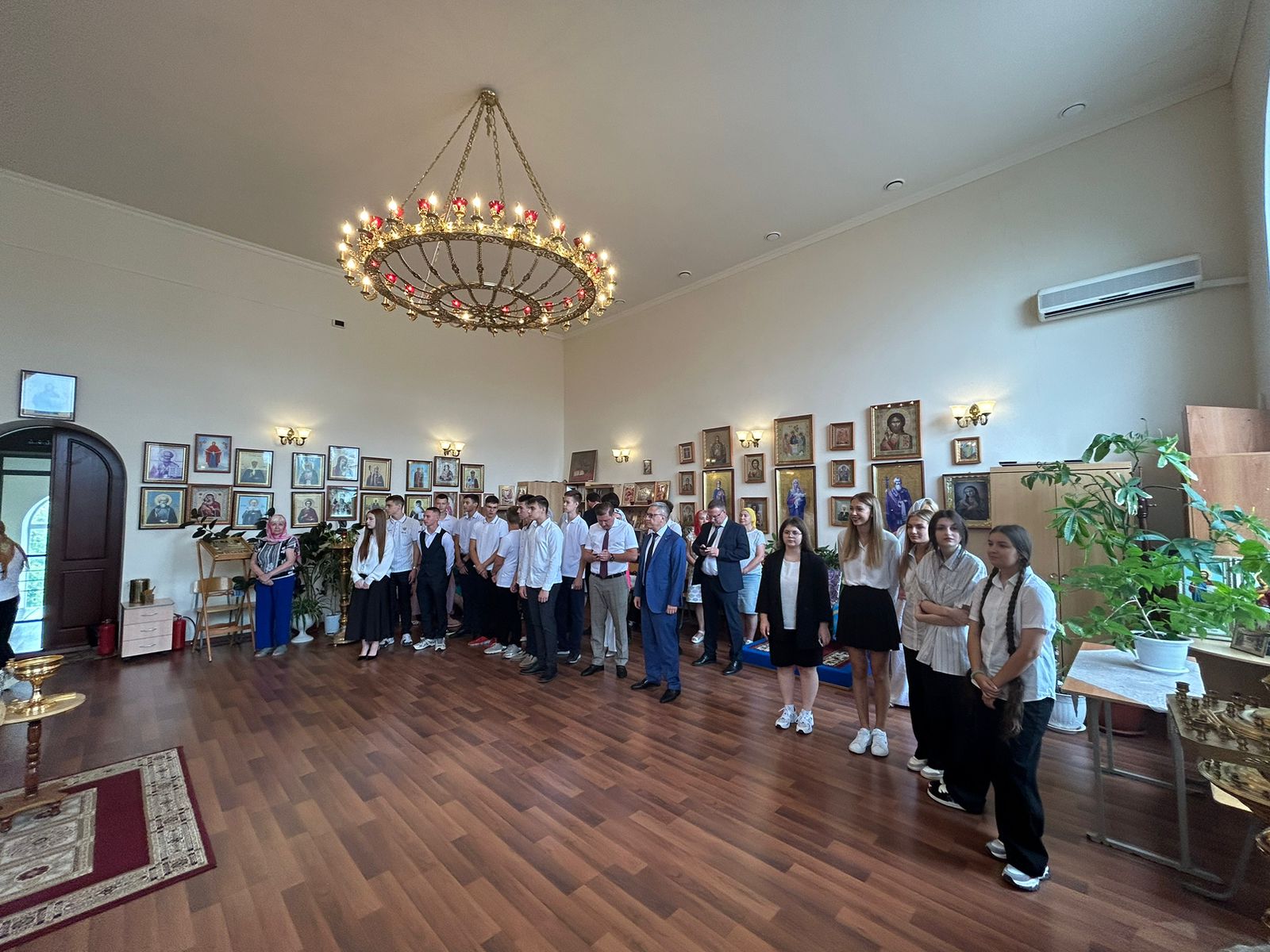 Настоятель храма Иоанна Богослова при ИСОиП г. Шахты иерей Олег Брехов отслужил молебен на начало учебного года и благословил учеников 10-х классов, поступивших в Физико-математическую школу ИСОиП (филиала) ДГТУ.