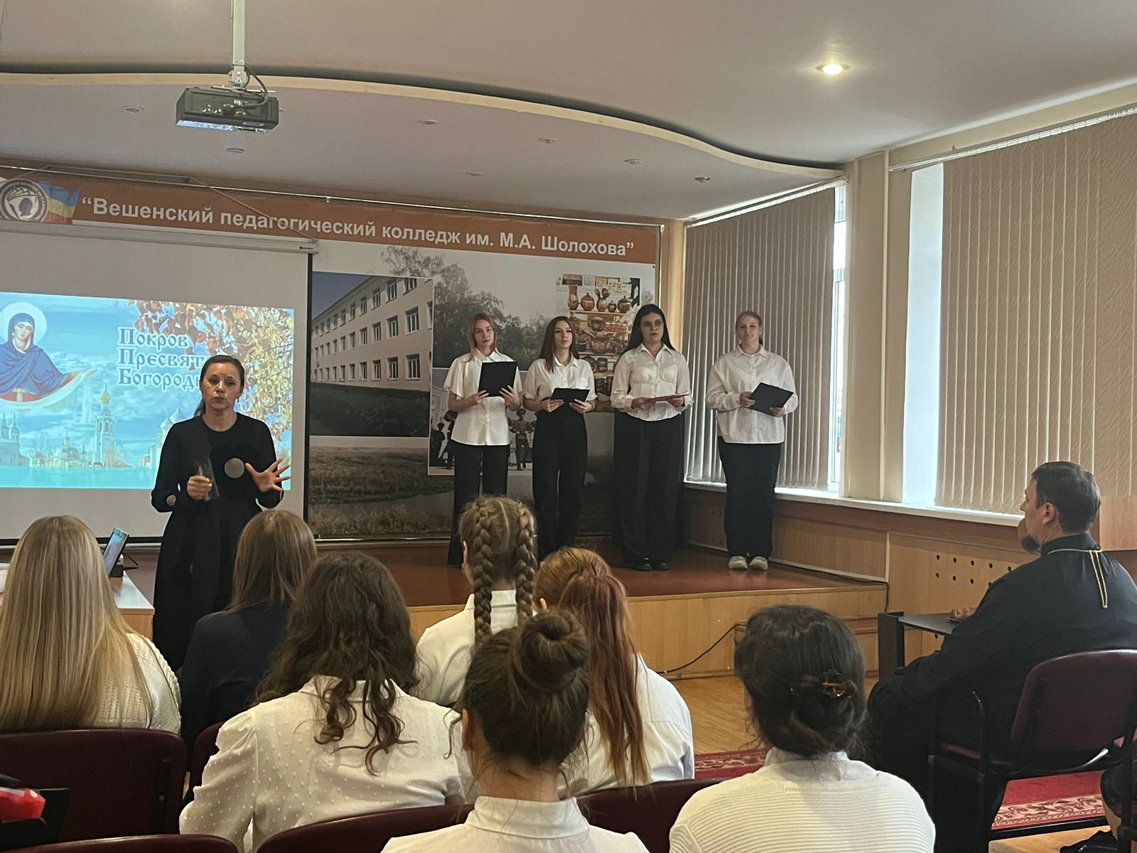 В день Покрова Пресвятой Богородицы в Вешенском педагогическом колледже прошло мероприятие, целью которого было духовно-нравственное воспитание подростков на основе ценностей православных традиций празднования Покрова Божией Матери.