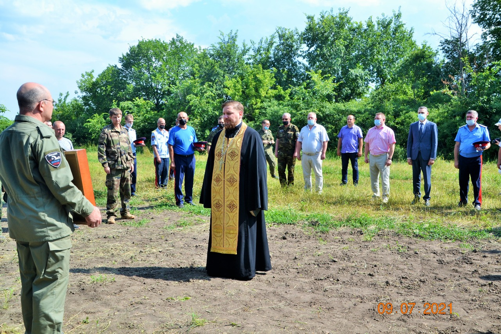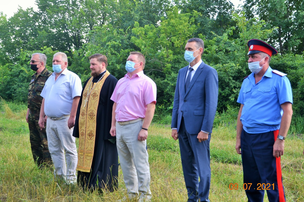 Атаман ГКО «Гундоровское» Л.Л. Перешеин и ветеран казачьего поискового движения В.А. Фетисов рассказали краткую историю поисковых изысканий, в ходе которых было принято решение установить поклонный крест и памятную доску с именем павшего здесь героя старшего сержанта Василия Яковлевича Енгалычева.