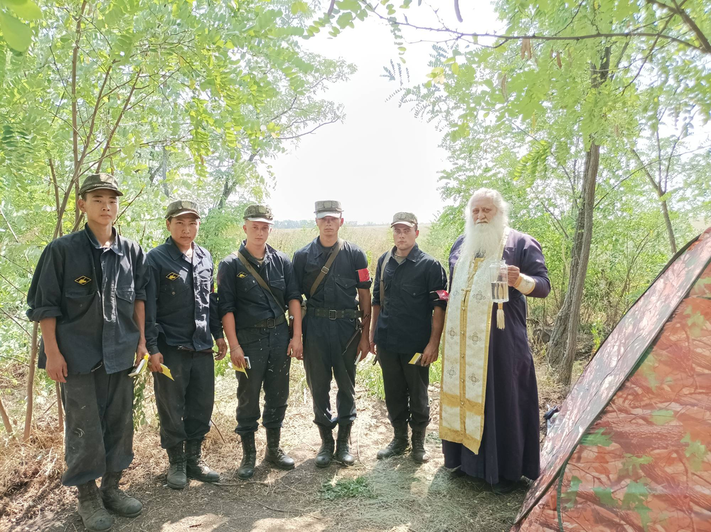 На тактическом полигоне дивизии был проведен молебен и беседа с военнослужащими, участвующими в полевом выходе.