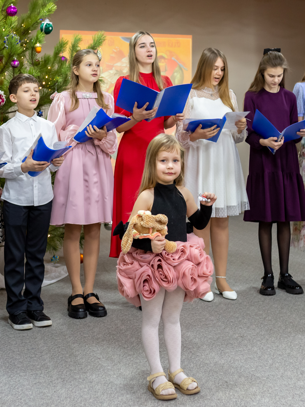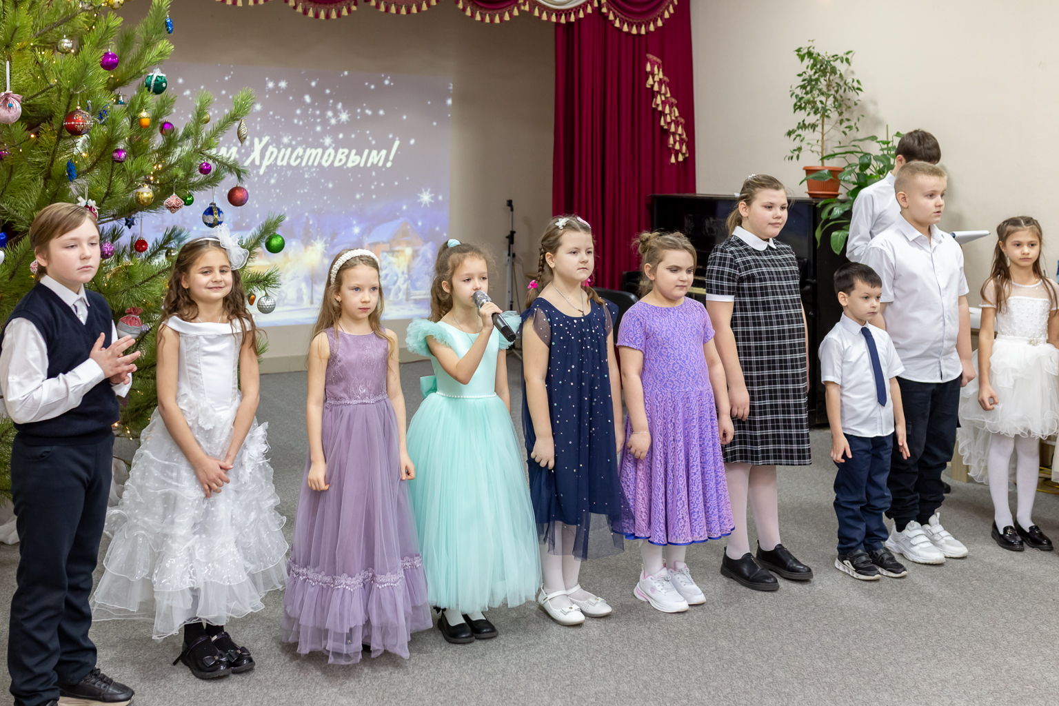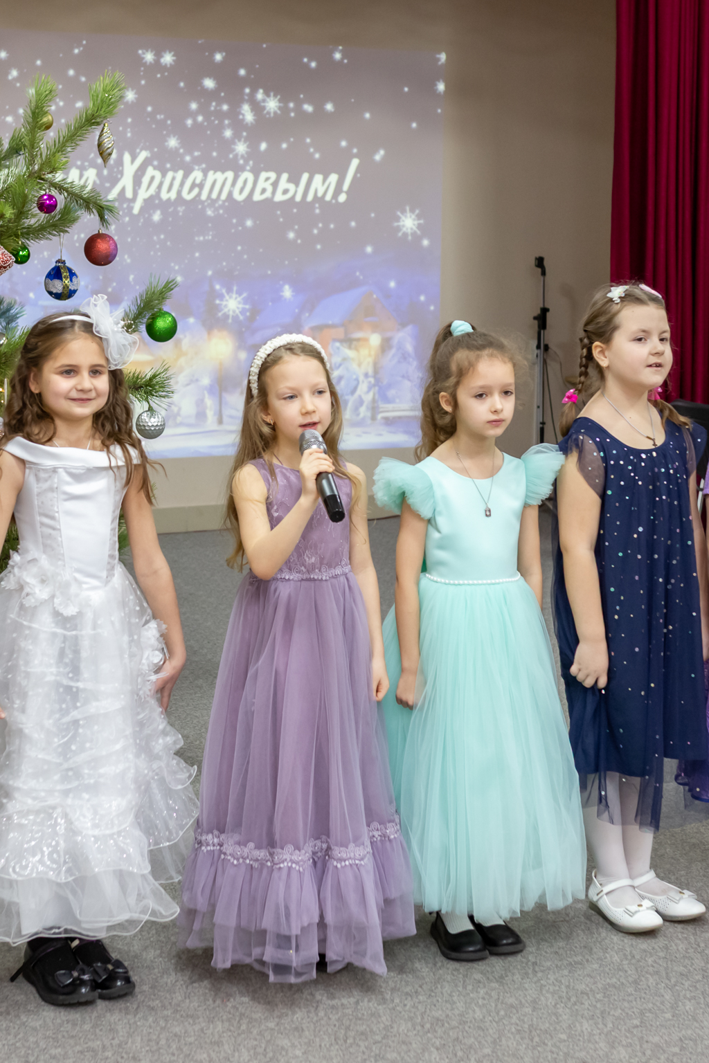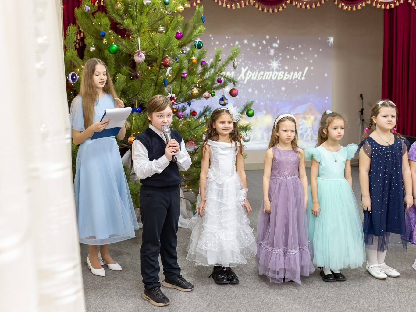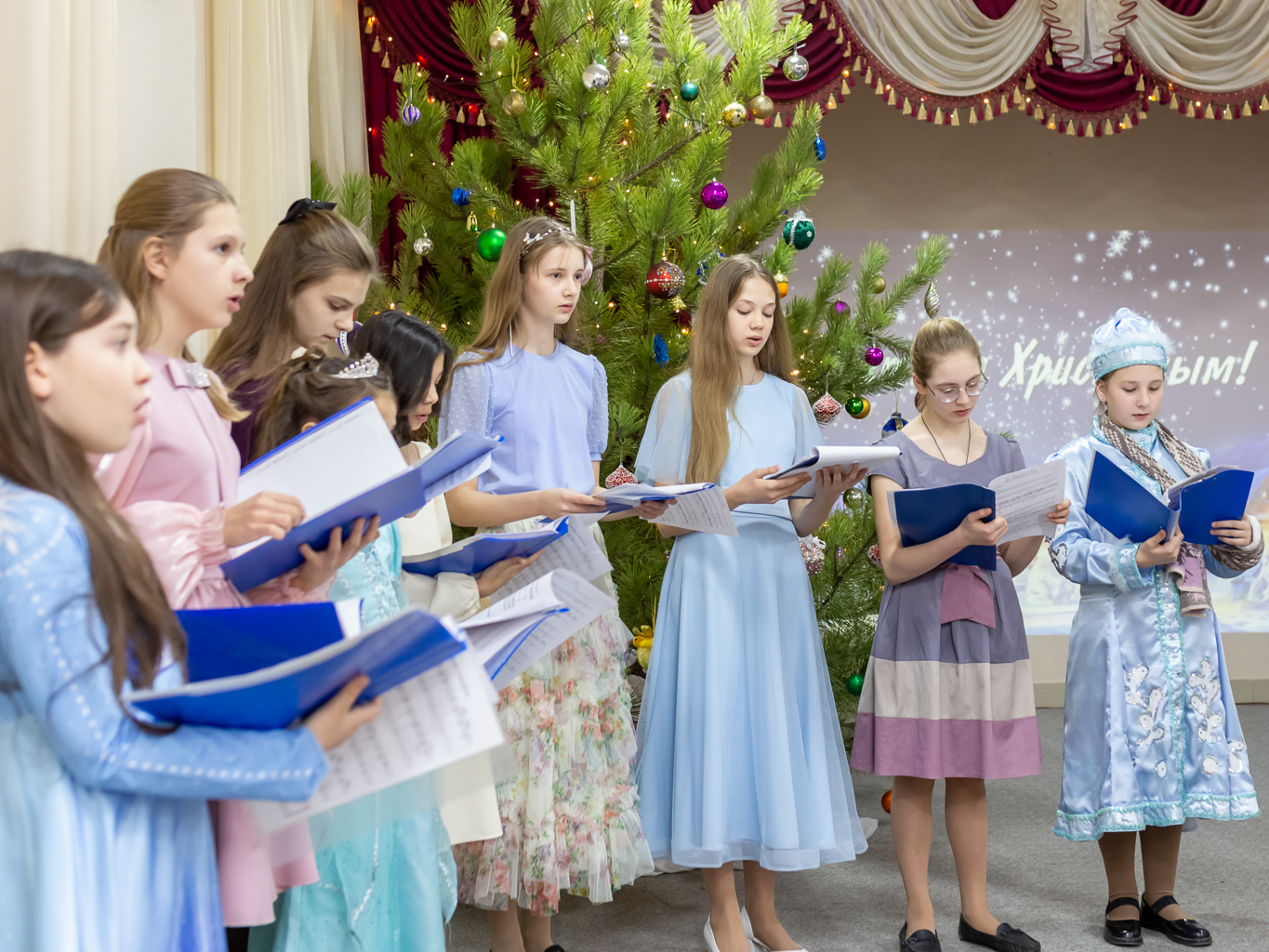 Особую теплоту празднику придали выступления самых юных участников. Младшая группа ансамбля «Колокольчики» исполнила трогательную песню «Ёлочка», а учащиеся читали стихи, наполненные детской верой и радостью о родившемся Спасителе.