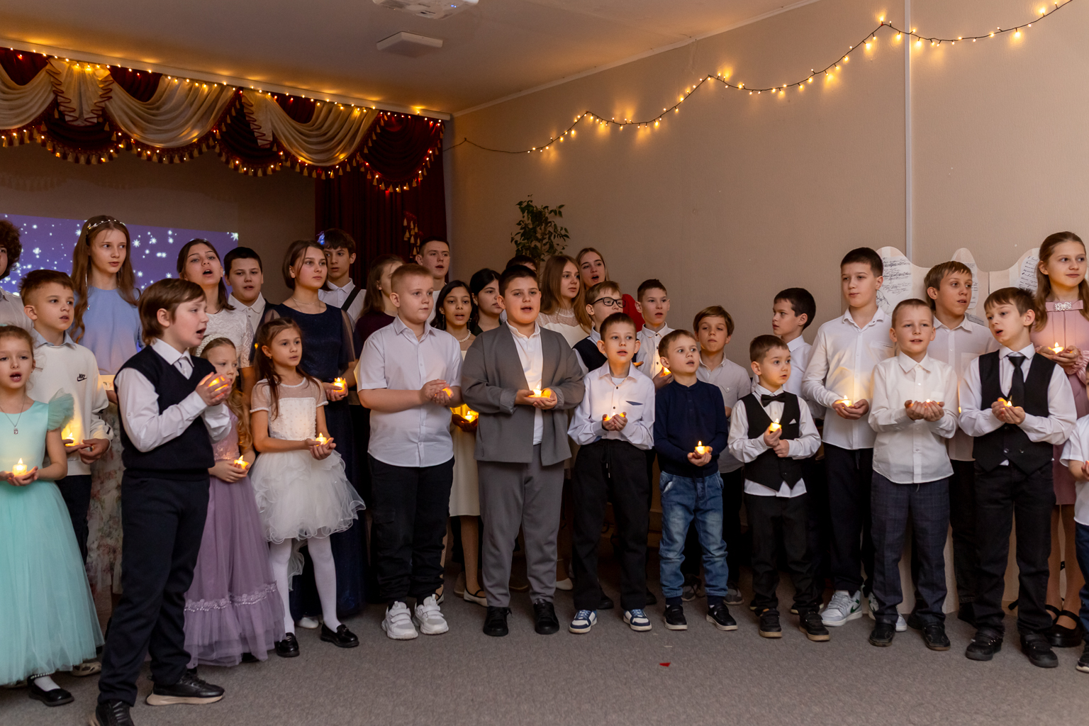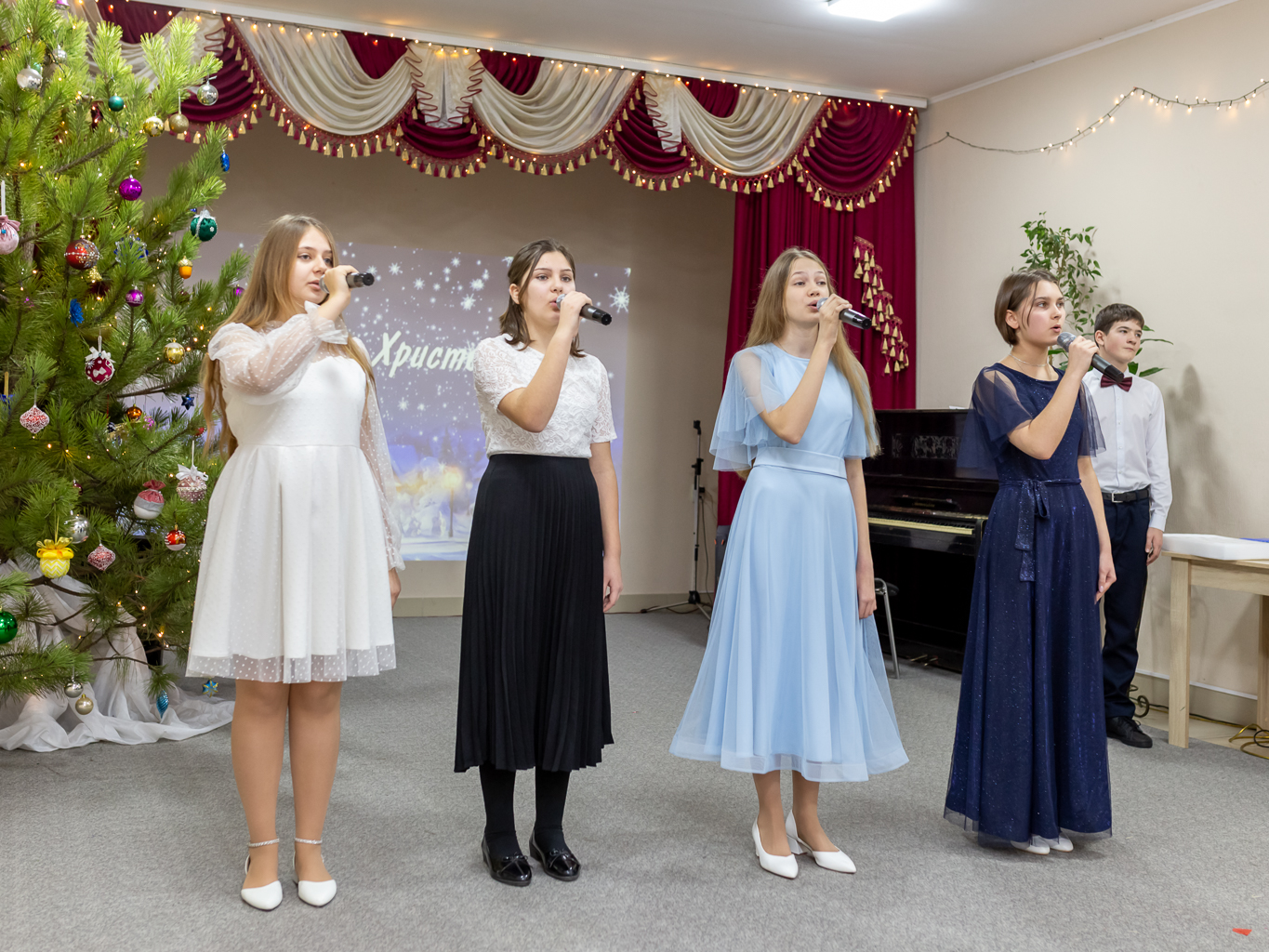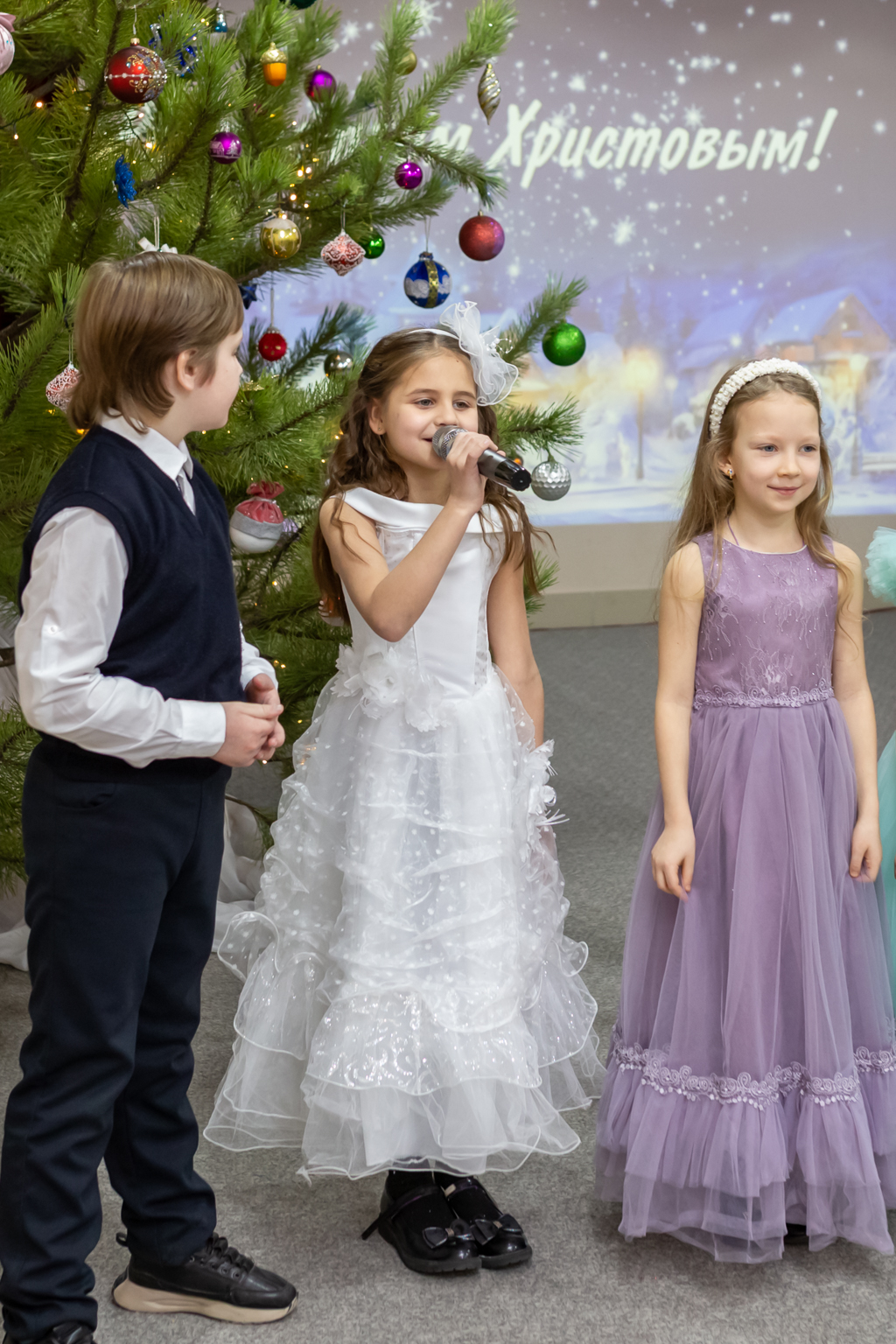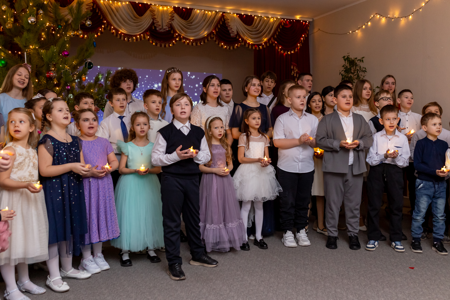Особую теплоту празднику придали выступления самых юных участников. Младшая группа ансамбля «Колокольчики» исполнила трогательную песню «Ёлочка», а учащиеся читали стихи, наполненные детской верой и радостью о родившемся Спасителе.