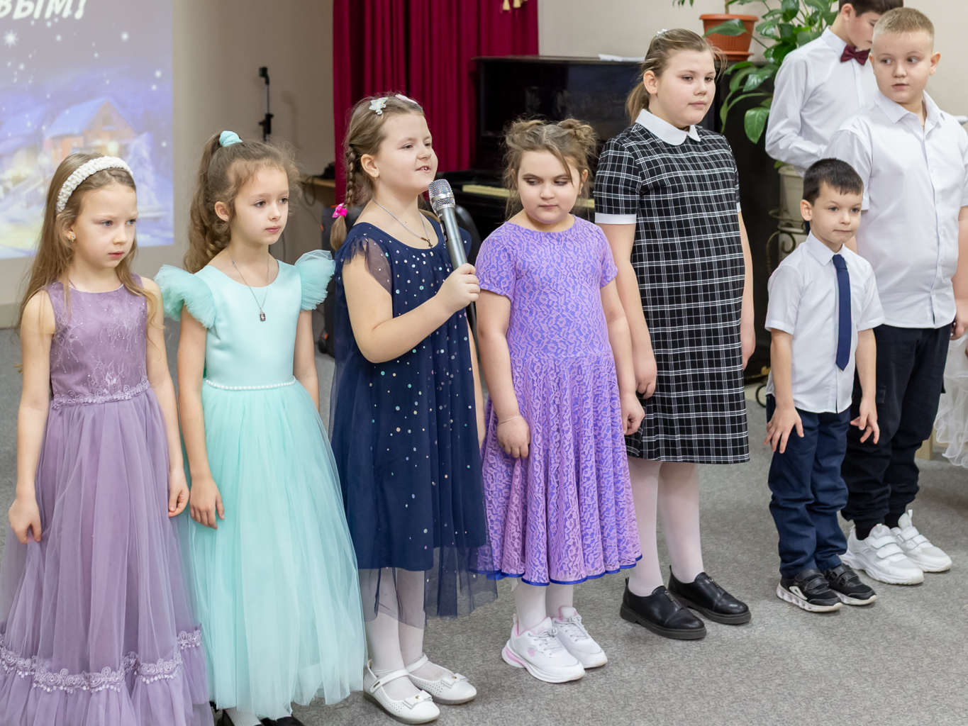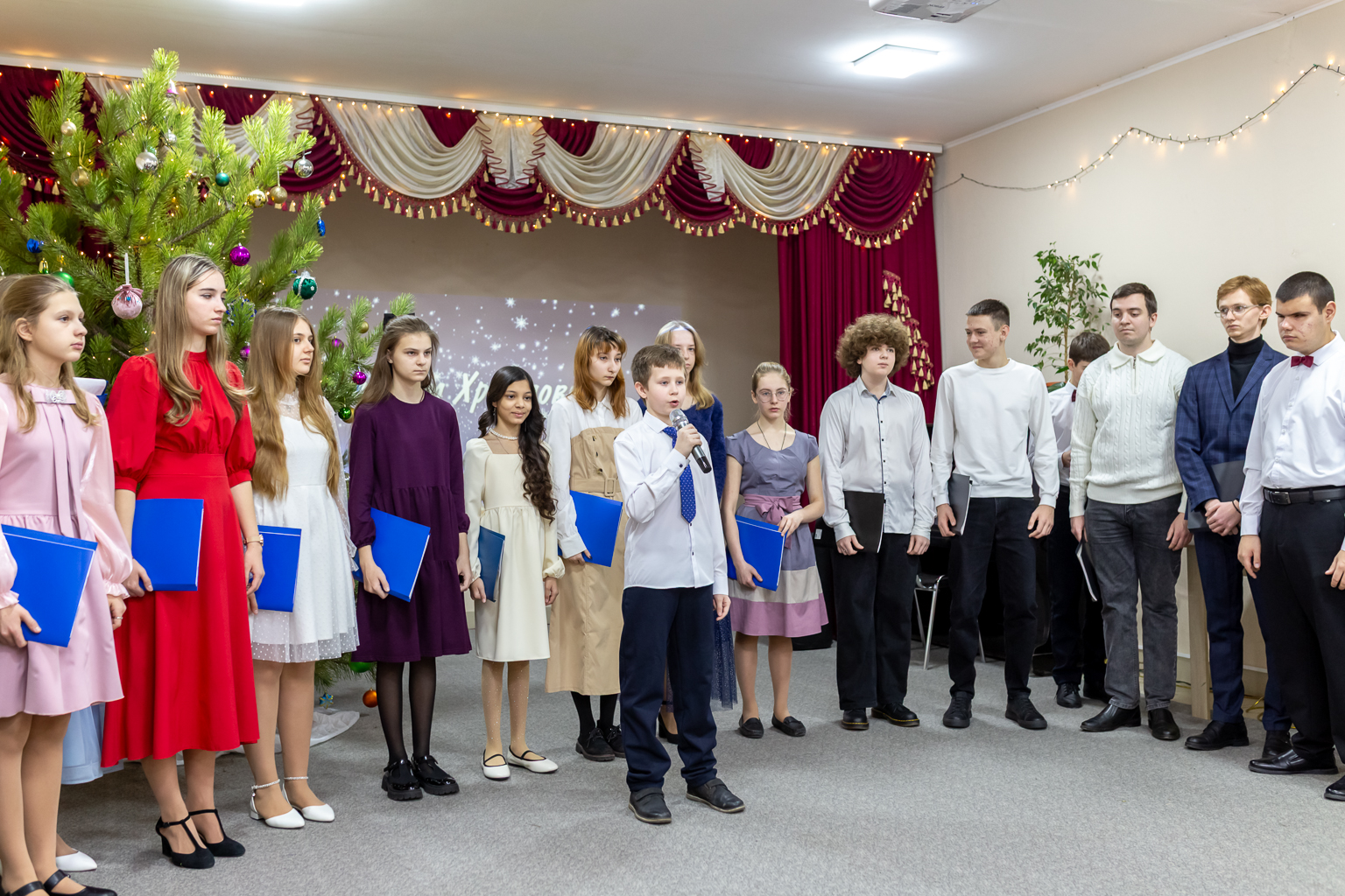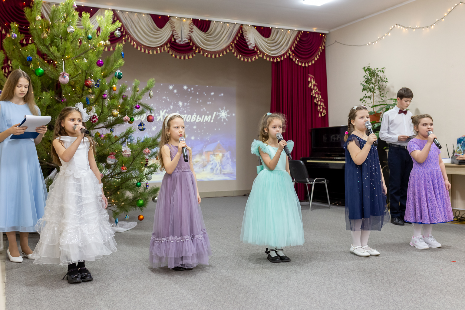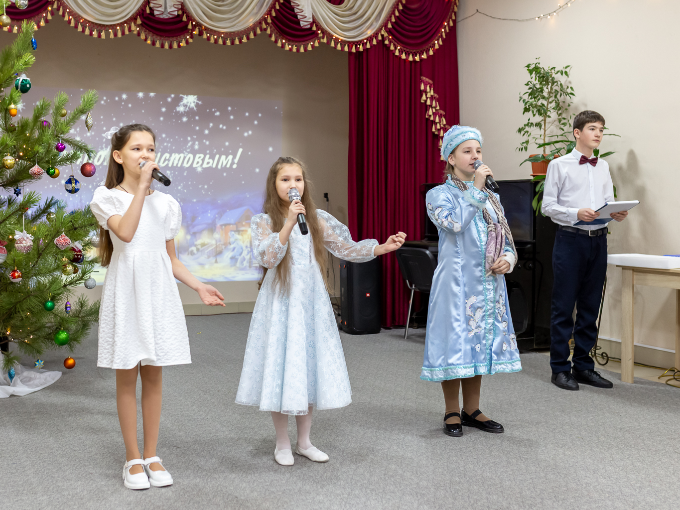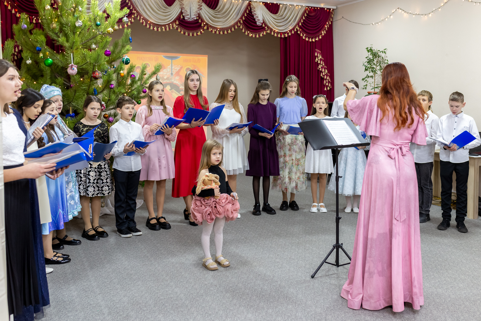 Особую теплоту празднику придали выступления самых юных участников. Младшая группа ансамбля «Колокольчики» исполнила трогательную песню «Ёлочка», а учащиеся читали стихи, наполненные детской верой и радостью о родившемся Спасителе.