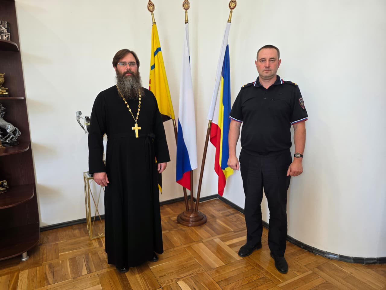 17 сентября 2025 года благочинный Александровск-Грушевского округа иерей Александр Теличкин встретился с начальником Управления МВД России по городу Шахты полковником полиции Юрием Геннадьевичем Пущеленко.