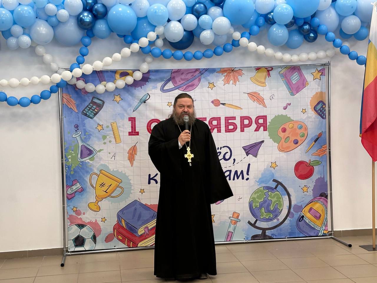 «Поздравляю всех с этим замечательным праздником — с Днем знаний! Для первоклассников сегодня открывается дверь в новый, увлекательный мир. Для выпускников этот год станет решающим, годом выбора будущего пути. Пусть этот учебный год будет для всех плодотворным, наполненным не только усердием в науках, но и добрыми делами, взаимопомощью и радостью открытий. Бог в помощь вам в этом благом деле!» — сказал в своем обращении протоиерей Сергий.
