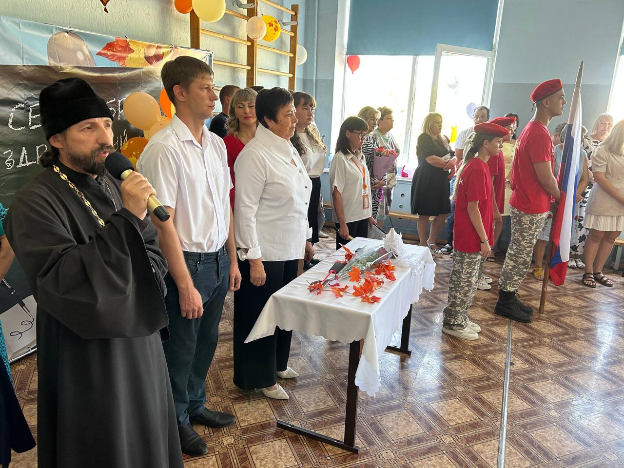 Настоятель храма святой равноапостольной княгини Ольги п. Горный иеромонах Арсений (Алимов) принял участие в этом мероприятии, поздравил всех присутствующих с началом учебного года, пожелал ученикам стремиться к знаниям, преодолевать трудности в достижении результатов. Отметил, что важную роль в жизни каждого ребенка играют учителя и родители.