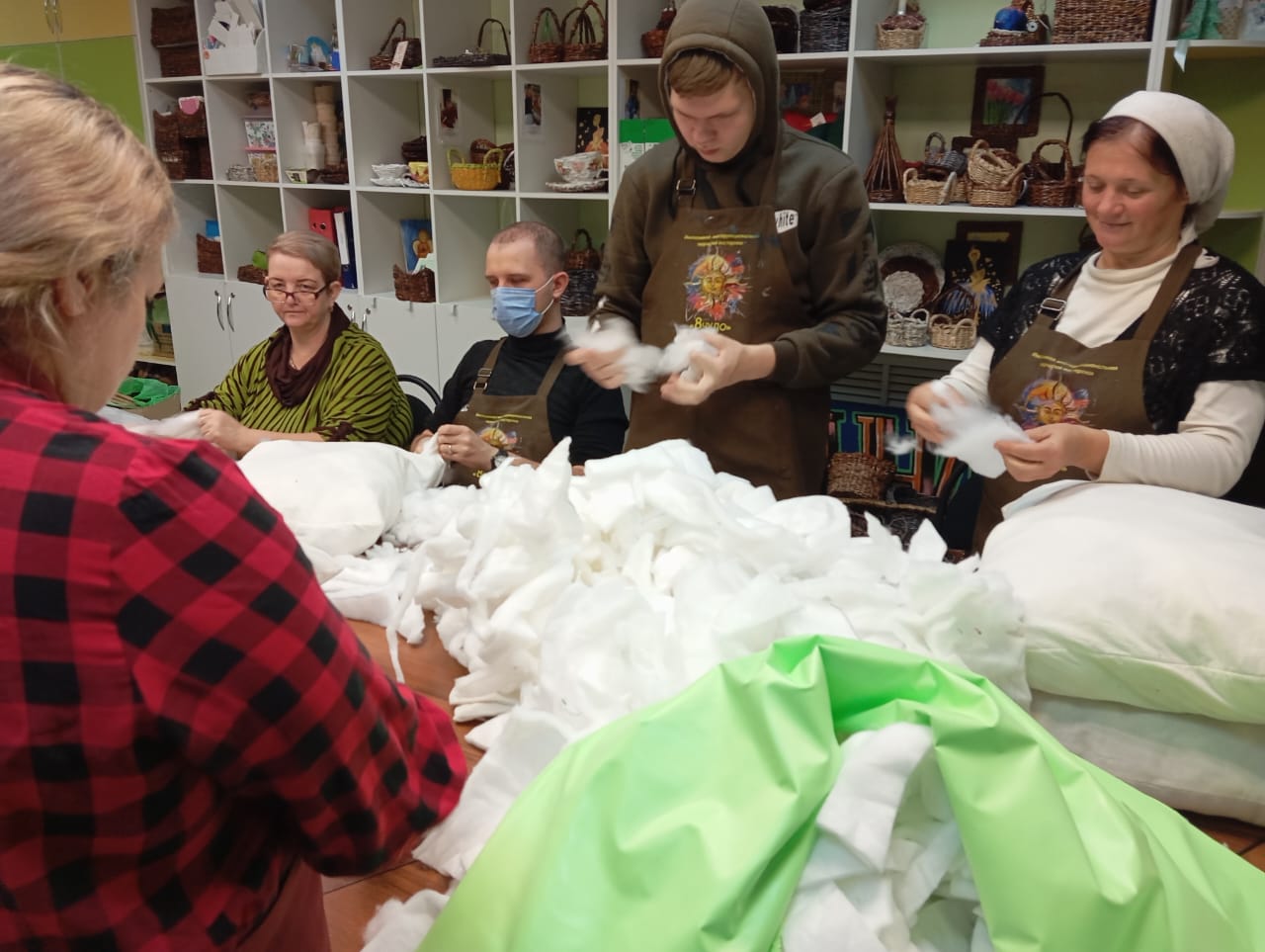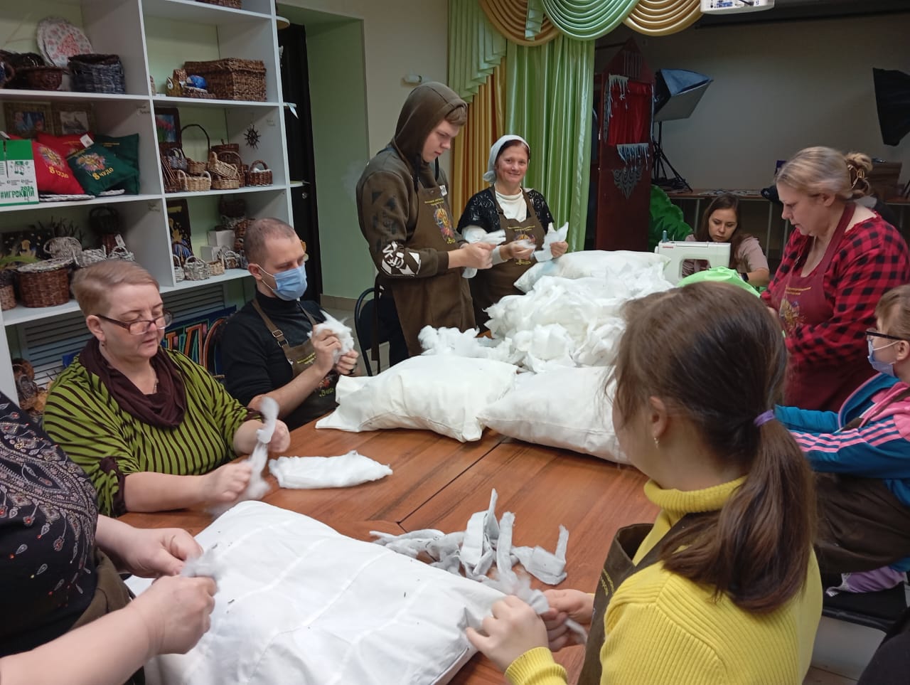В преддверии Дня защитников Отечества ребята передали сестрам Марфо-Мариинского сестричества храма Архистратига Михаила п. Каменоломни очередную партию подушек с нетканым ватином.