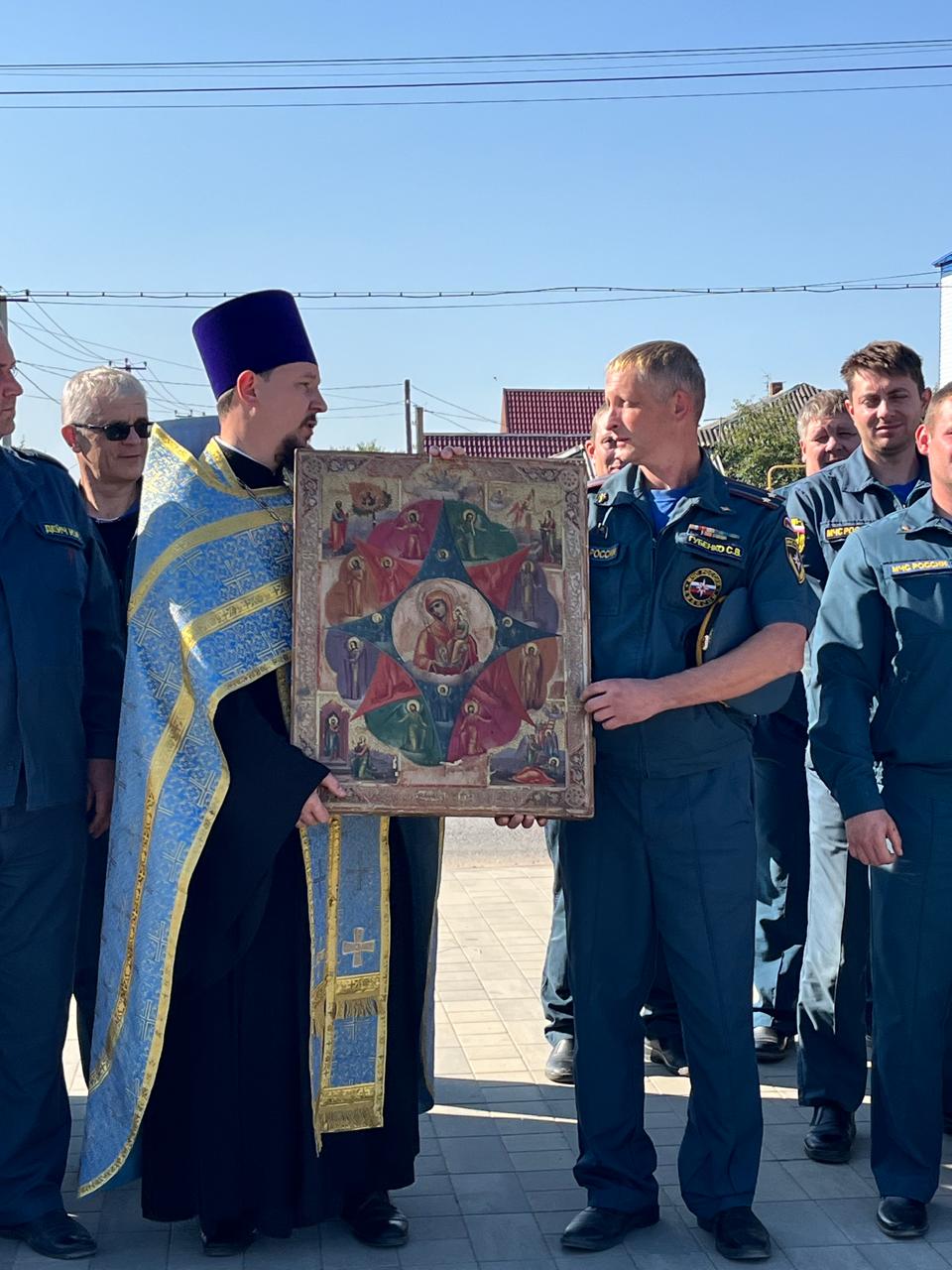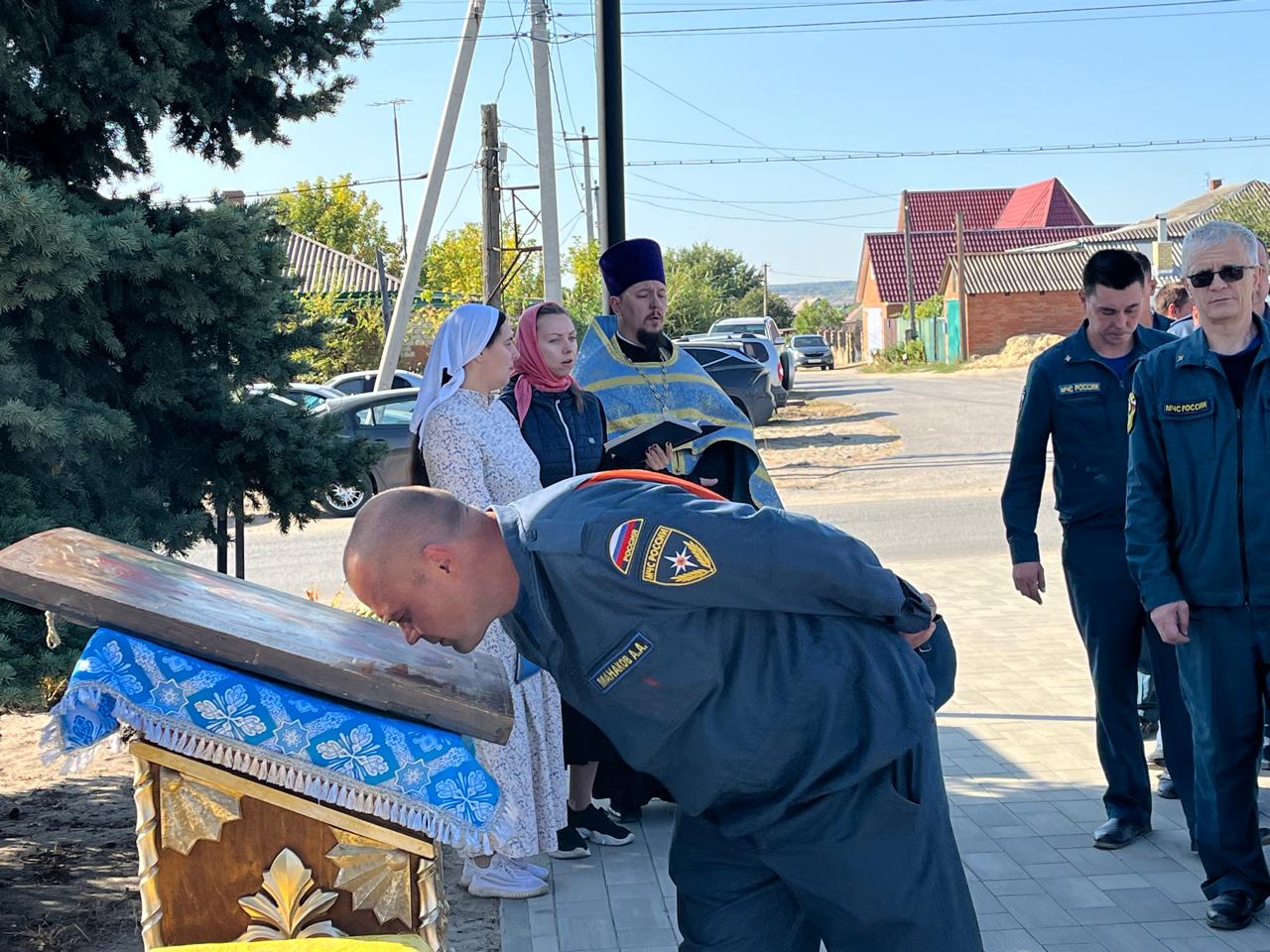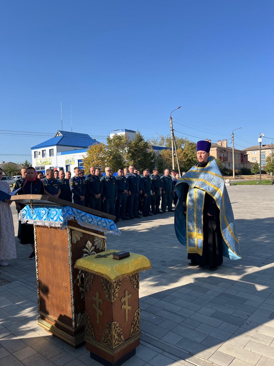 Богослужение совершил благочинный Верхнедонского округа иерей Роман Митяшин. В богослужении принял участие личный состав 18-го пожарно- спасательного отряда Шолоховского района. Икона Божией Матери «Неопалимая купина» особо почитаема пожарными, как заступница и покровительница. Святыня оберегает тех, кто посвятил себя нелёгкому делу спасения людей, защищает дома от пожаров и поджогов.