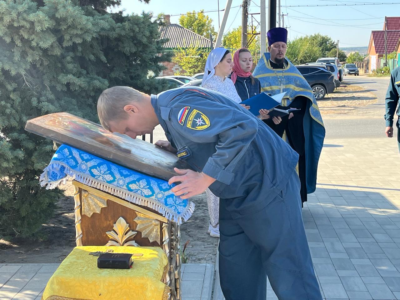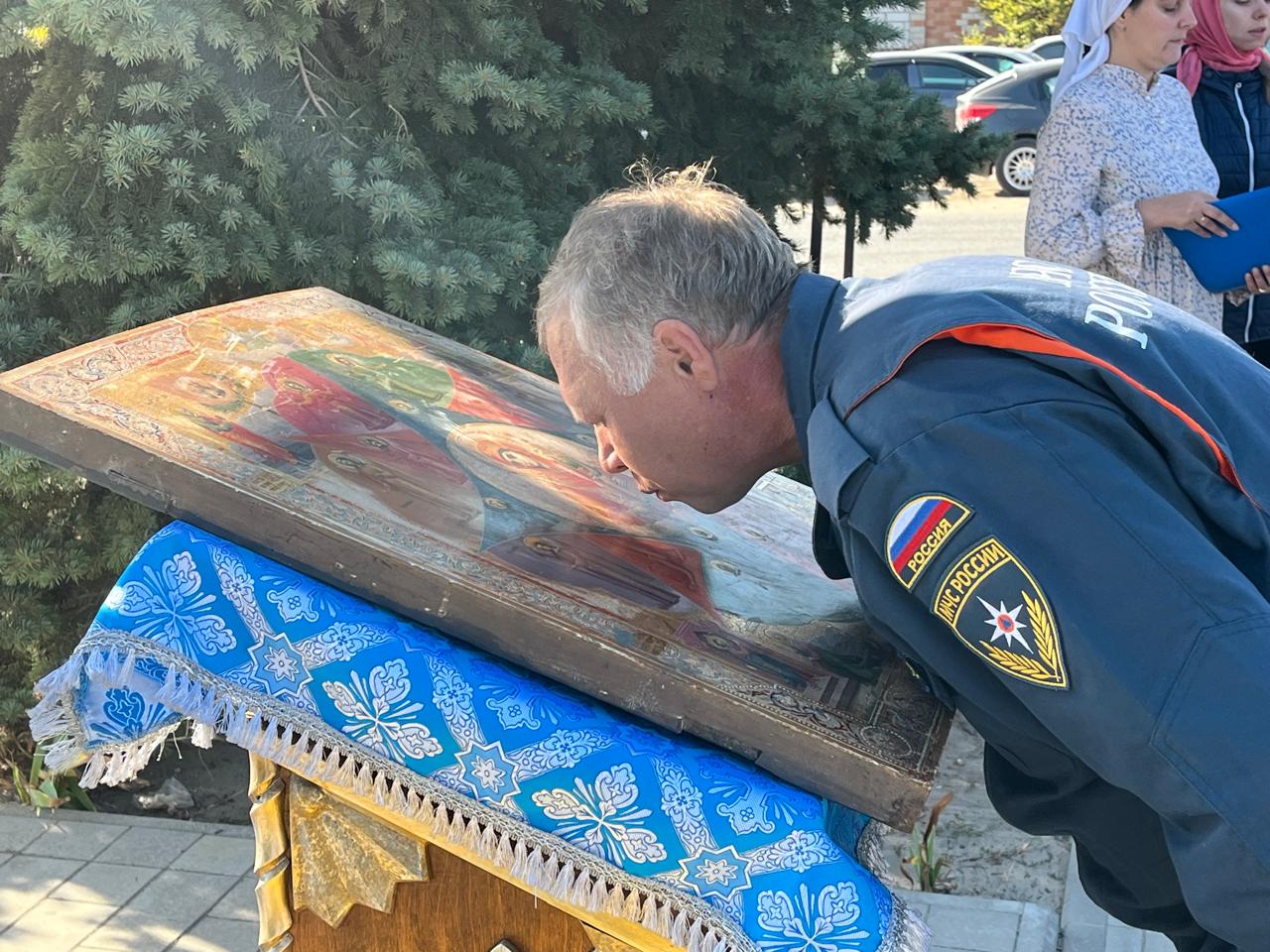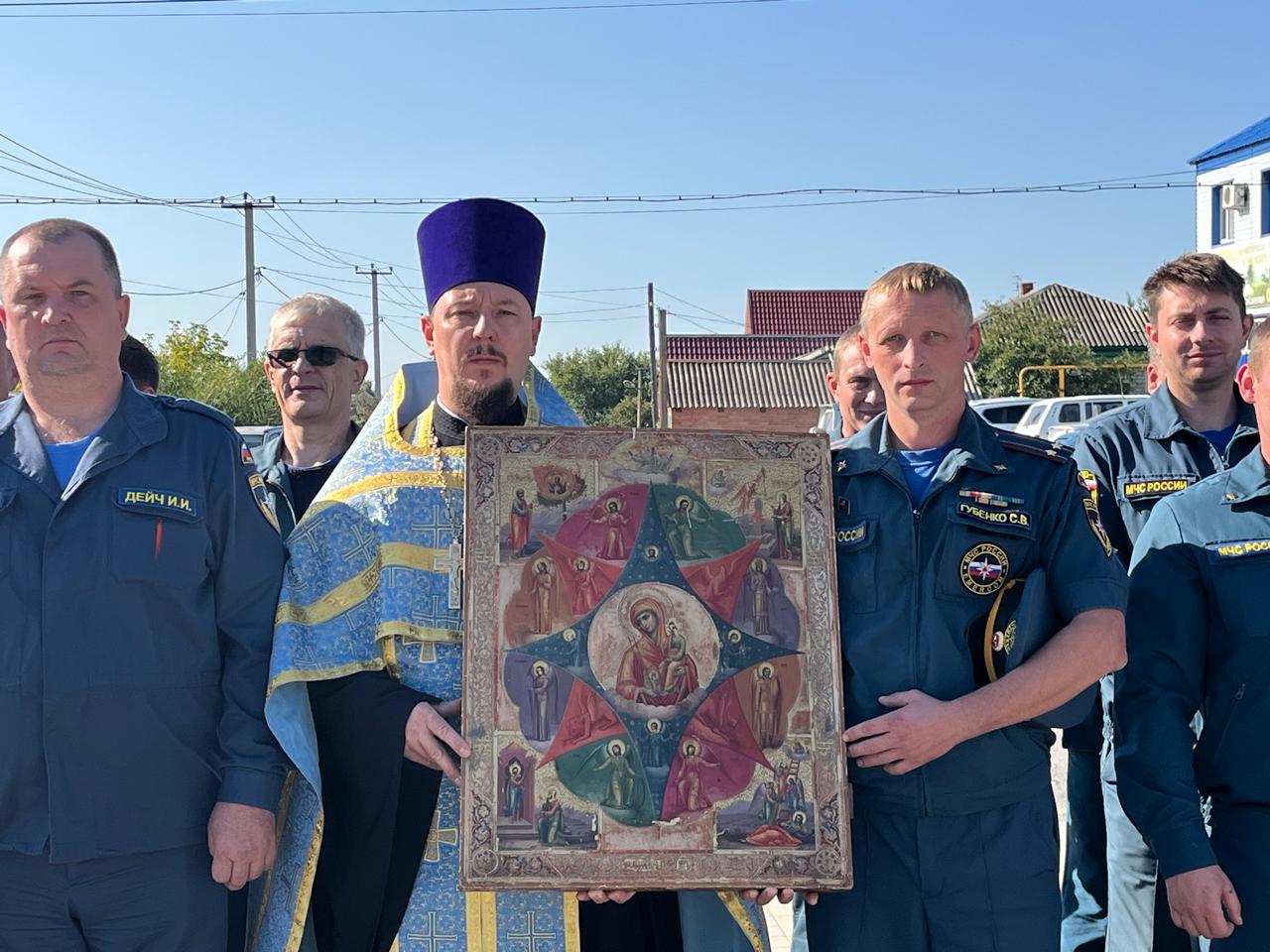 Богослужение совершил благочинный Верхнедонского округа иерей Роман Митяшин. В богослужении принял участие личный состав 18-го пожарно- спасательного отряда Шолоховского района. Икона Божией Матери «Неопалимая купина» особо почитаема пожарными, как заступница и покровительница. Святыня оберегает тех, кто посвятил себя нелёгкому делу спасения людей, защищает дома от пожаров и поджогов.