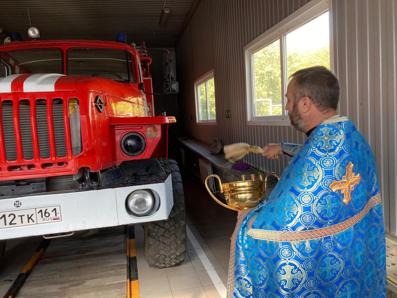 В день празднования иконы Божией Матери "Неопалимая Купина" настоятель храма святого великомученика Георгия Победоносца п. Новозарянский иерей Сергий Липень посетил местную пожарную часть и совершил молебен для спасателей.