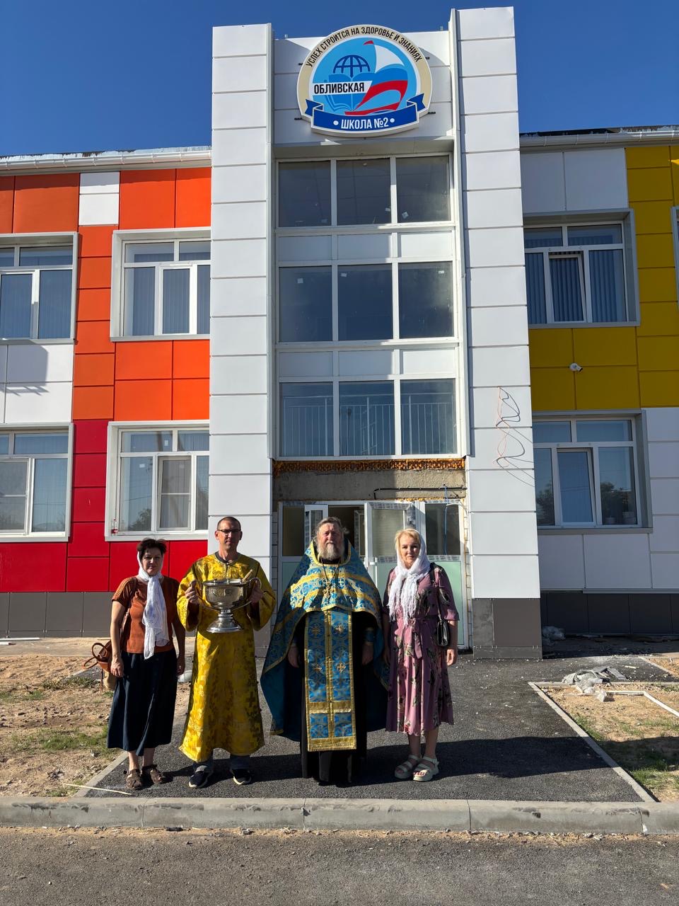 В станице Обливской завершился капитальный ремонт средней общеобразовательной школы. По приглашению директора школы настоятель Свято-Никольского храма ст. Обливской протоиерей Александр освятил обновленное здание.