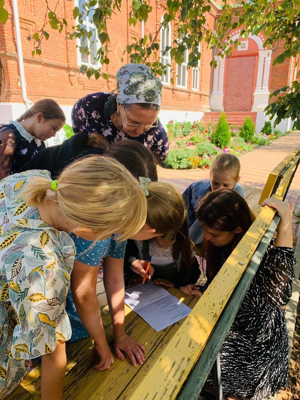 Игра-поиск началась в притворе храма и продолжилась во дворе. Ребята разделились на команды по желанию. Соревновались в знании Закона Божия «Знатоки» (мальчики) и «Грамотеи» (девочки). По маршрутным листам ребята прошли станции – «Молитва», «Сотворение мира», «Ветхозаветная», «Новозаветная» и тест с картинками по храмоведению. Игра показала, что учащиеся воскресной школы хорошо помнят пройденный материал. Ребята обменялись впечатлениями о летнем отдыхе. Праздник состоялся!