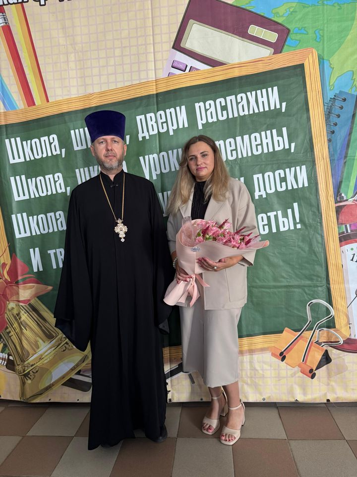 Священник благословил учителей и учащихся на новый учебный год, произнес напутственное слово первоклассникам и будущим выпускникам, пожелал Божьей помощи, сил и здоровья и больше уделять внимания духовно-нравственному воспитанию подрастающего поколения.