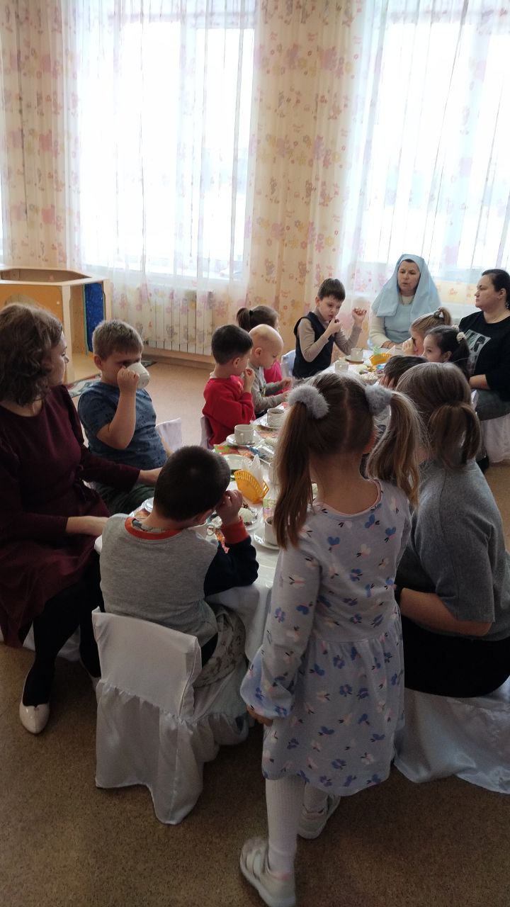 Вместе с Инной Саханиной дети веселились, играли в игры, танцевали, радовались подаркам, которые им вручили и от Донского храма, и в рамках акции «Подарки от св. Николая». А сестра милосердия рассказала деткам об этом удивительном времени, и почему в это время принято дарить подарки и радоваться.