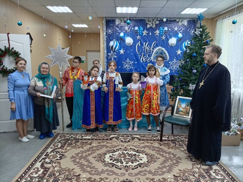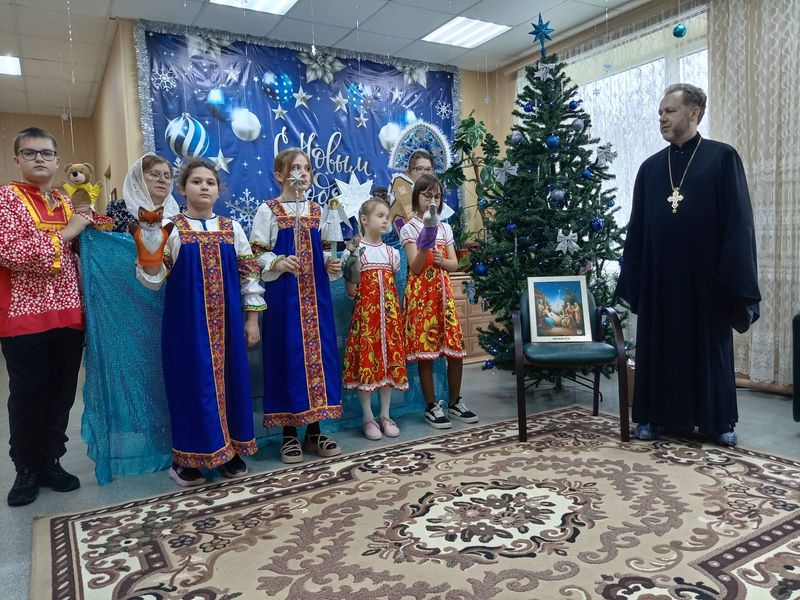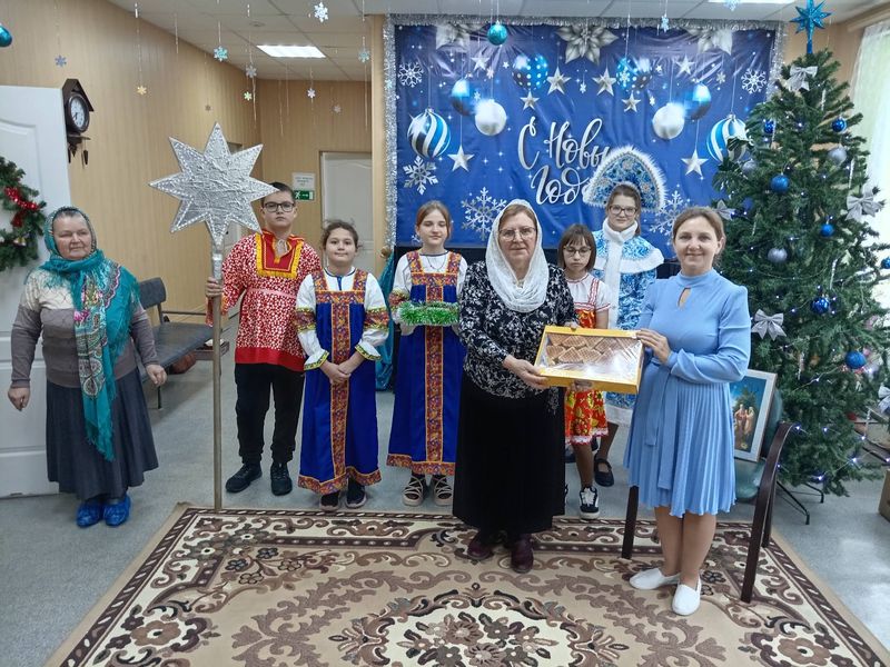 Священник и дети поздравили с Рождеством жителей дома престарелых в посёлке Садовый