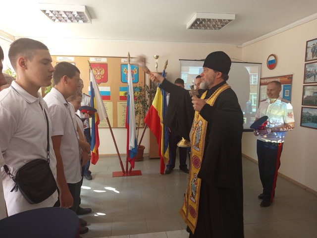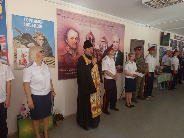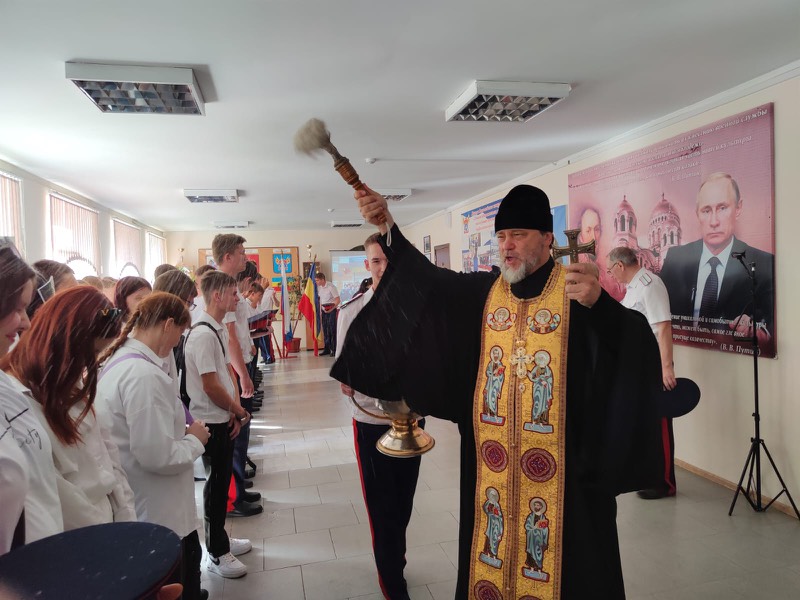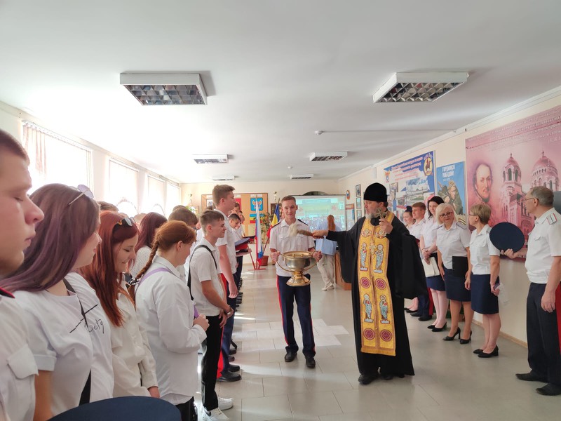 Духовный наставник отец Димитрий обратился к присутствующим со словом назидания в котором отметил важность соработничества с Богом в творческом процессе воспитания для формирования развитой личности. Прочитав молитву, священнослужитель окропил всех освященной водой.