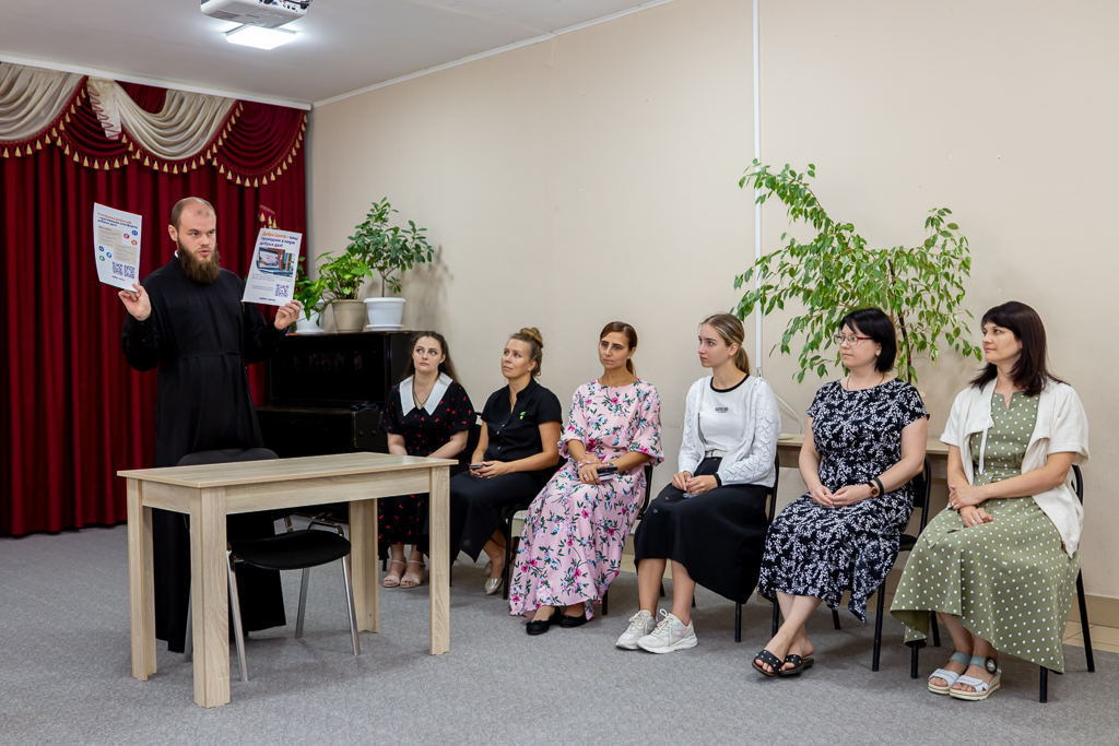 В воскресной школе «Покров» состоялось родительское собрание перед началом нового учебного года. Перед родителями воспитанников выступил настоятель Покровского кафедрального собора иерей Александр Теличкин.