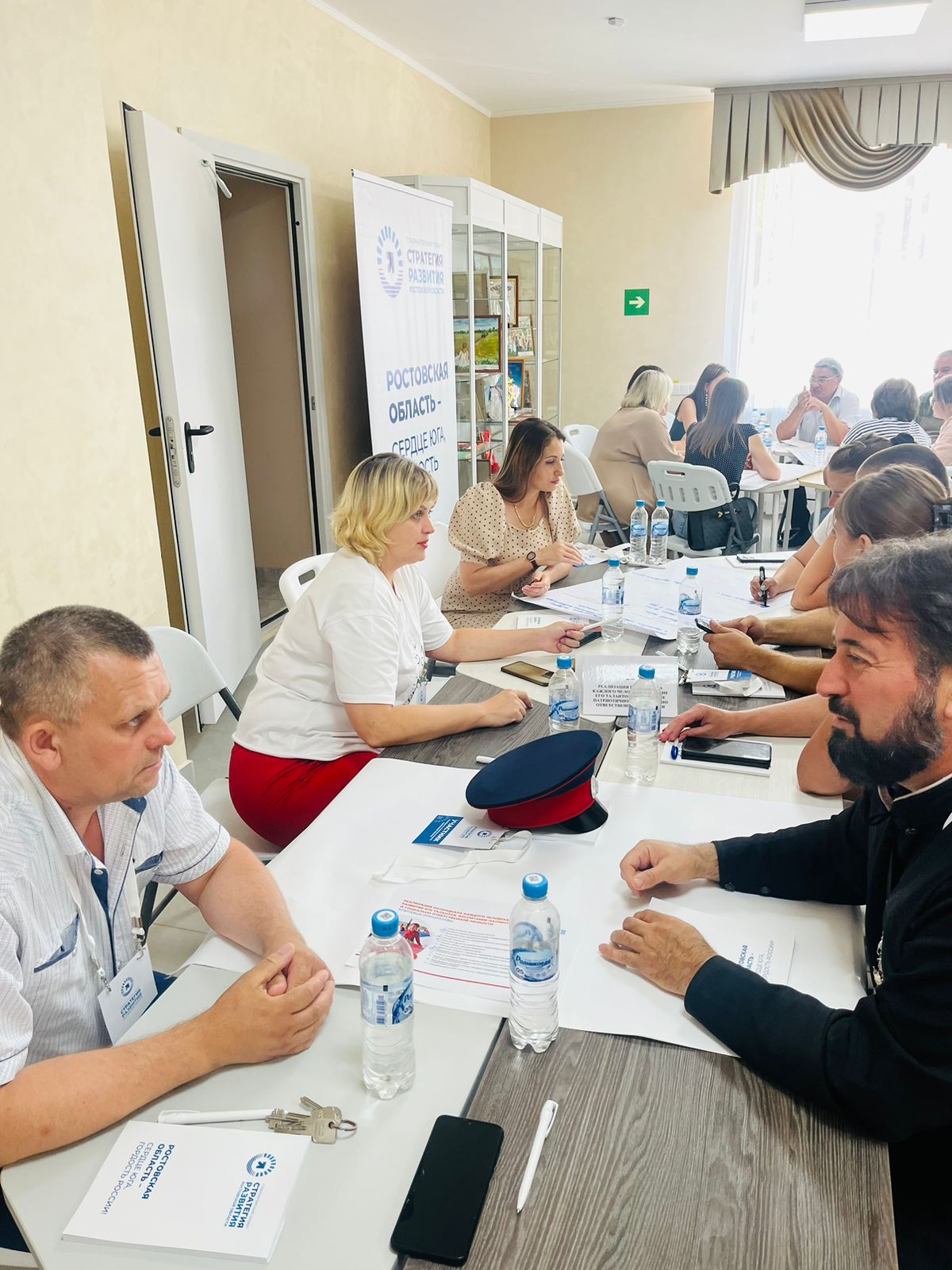 Священник отслужил краткий молебен перед началом всякого доброго дела, пожелав всем присутствующим многая и благая лета, принял активное участие в проведении стратегического совещания. Как отметил Юрий Слюсарь, ключевая задача стратегических сессий – услышать голос жителей, их идеи и предложения. Лучшие из них войдут в обновлённую стратегию развития Ростовской области до 2030 года, чтобы сделать регион комфортнее для жизни каждого.