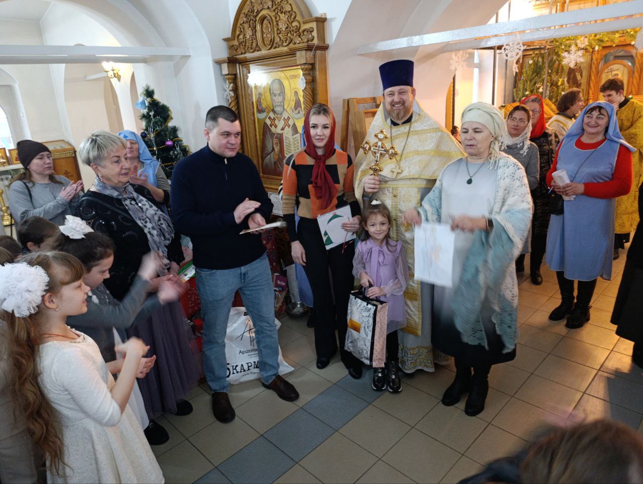 11 декабря 2026 года, после Божественной литургии, в Донском храме г. Новошахтинска в рамках доброй акции «Подарки к Рождеству Христову и Новолетию от св. Николая», которая проводится для детей из семей, находящихся в трудной жизненной ситуации, семей с детьми инвалидами, семей участников СВО, детей временно размещенных в СРЦ, прошла выдача подарков.