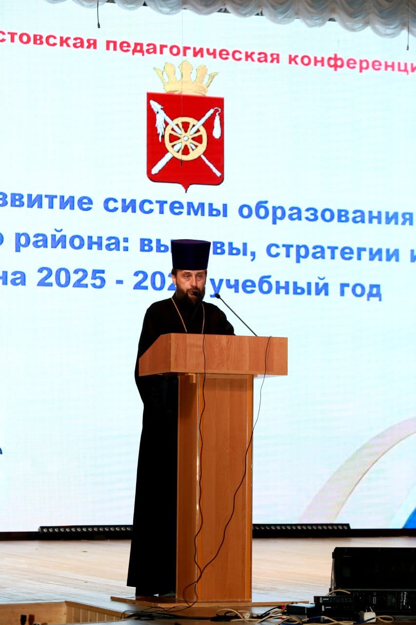 В своём обращении к участникам педагогической конференции, благочинный приходов Нижнедонского округа протоиерей Сергий Яценко поблагодарил учителей за самоотверженное служение, неравнодушие и искреннее стремление передать учащимся крайне важные знания и убеждения, от восприятия которых зависит будущее молодых людей, их счастье и благополучие.