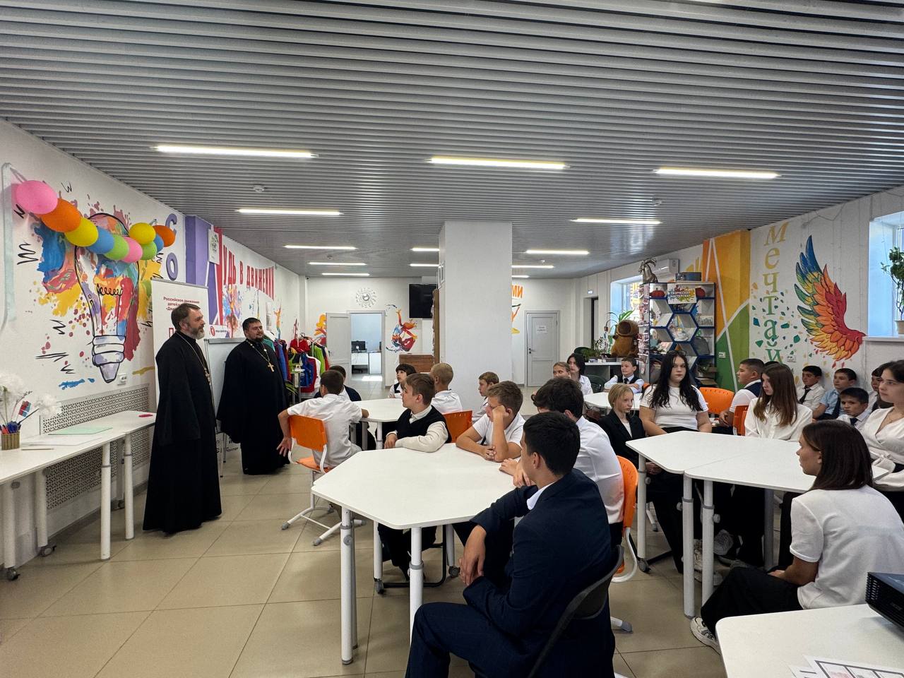 Настоятель храма святителя Николая станицы Багаевской протоиерей Александр Маштанов и настоятель храма Архангела Михаила хутора Елкин иерей Анатолий Минаев посетили многофункциональный молодежный центр «Вектор роста».