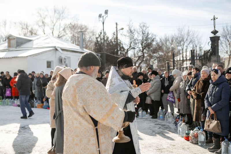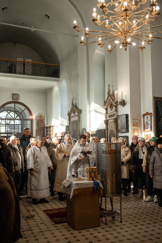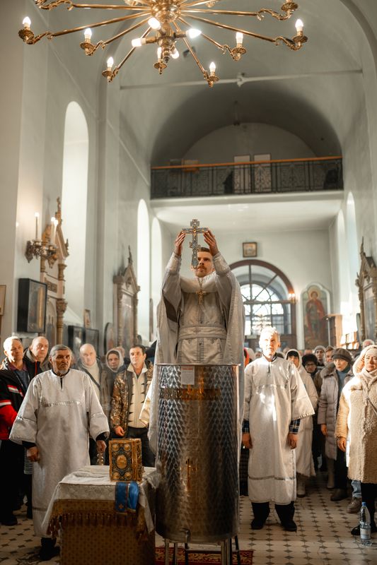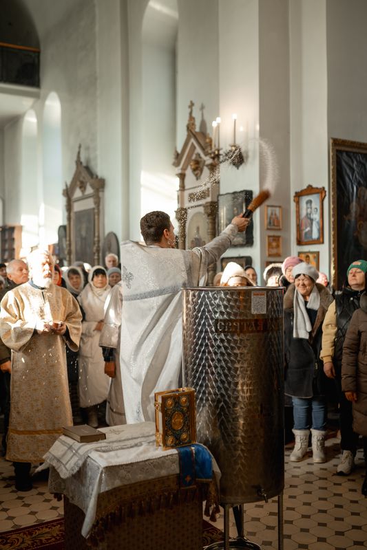 Храм был полон прихожан, пришедших помолиться и набрать крещенской воды. По окончании литургии был совершён чин Великого освящения воды, после которого настоятель окропил святой водой храм и молящихся.
