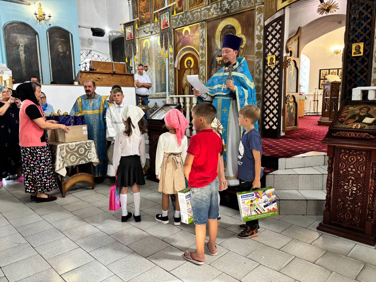 Настоятель прихода иерей Роман Митяшин вручил подарки 15 детям из нуждающихся семей. В наборы вошли все необходимые для учебы предметы: тетради, ручки, карандаши, пеналы, краски, кисточки и прочие принадлежности. В конце мероприятия священник поздравил учащихся с началом нового учебного года и пожелал успехов в учебе.