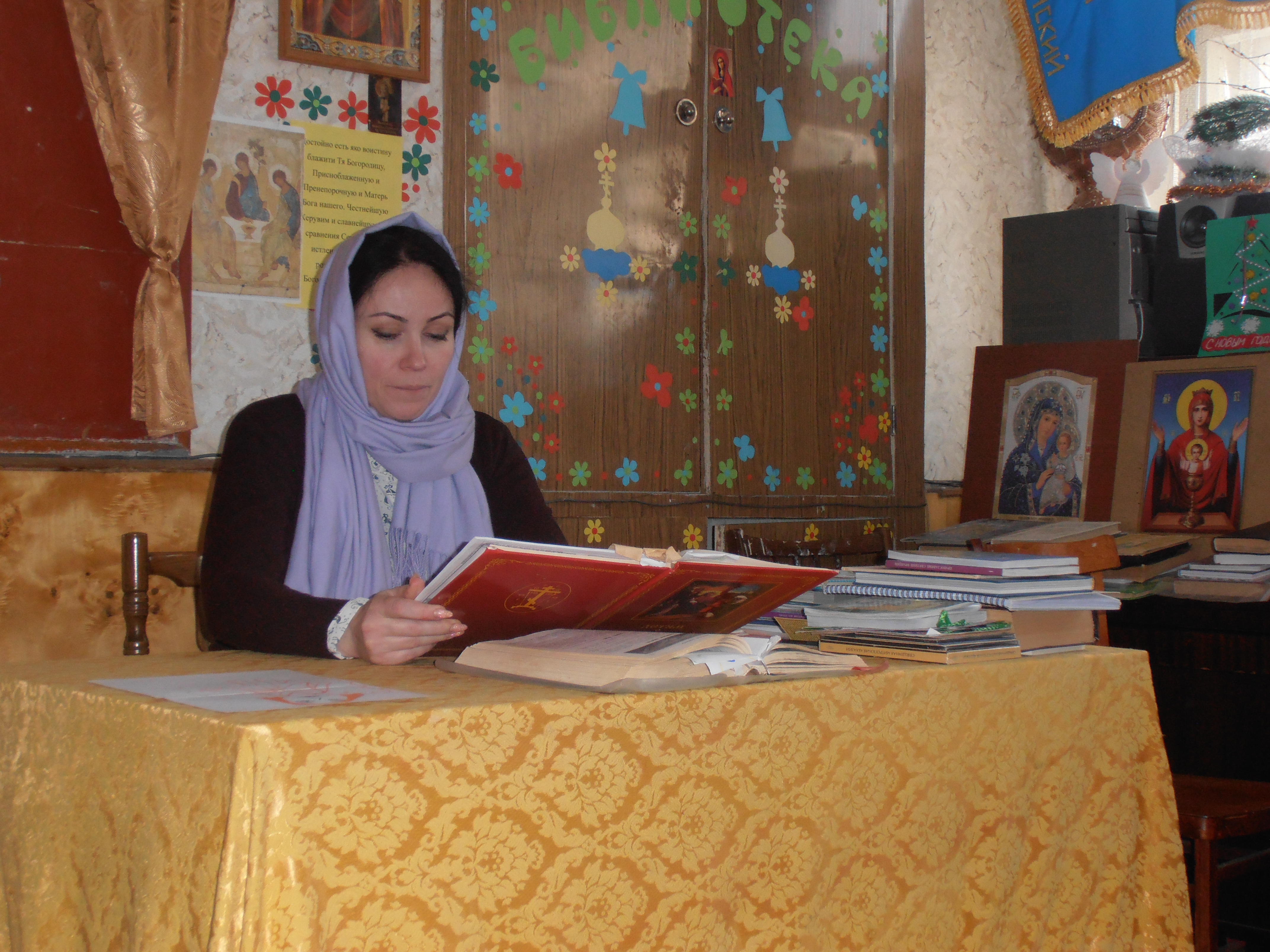 Директор церковно‑приходской воскресной школы «Радость» при храме Почаевской иконы Божией Матери города Каменск‑Шахтинский Виктория Викторовна Галдина провела занятия с воспитанниками и их родителями.