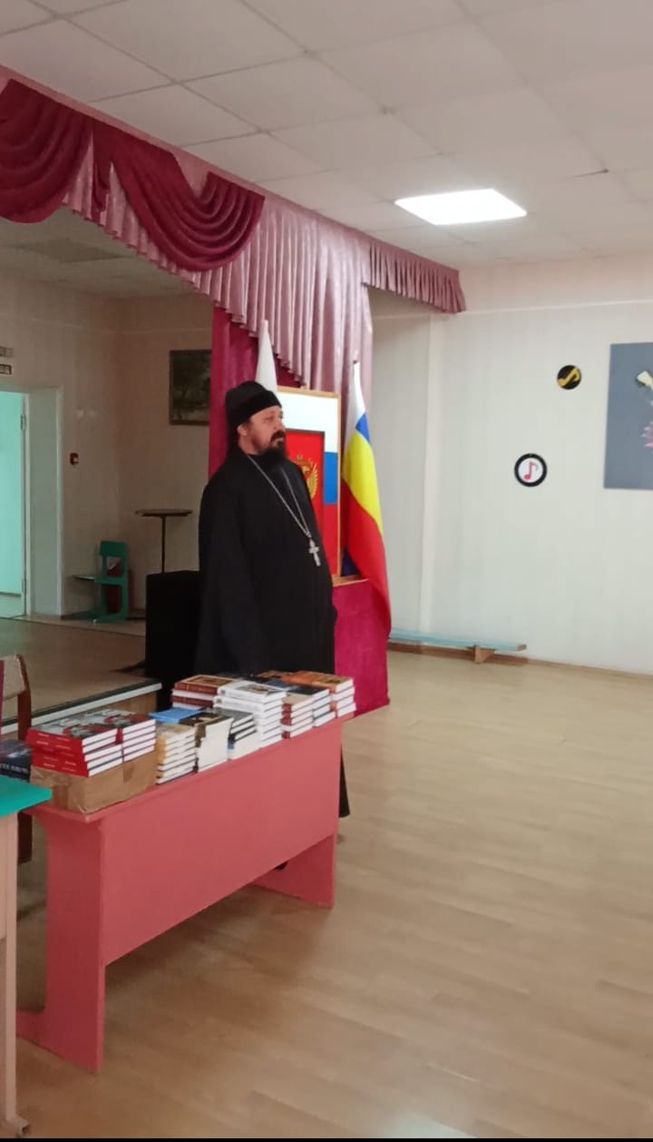 Настоятель храма в честь Архангела Михаила с. Первомайское, иерей Иоанн Агаев, провел встречу с учащимися местной школы, посвященную Дню православной книги.