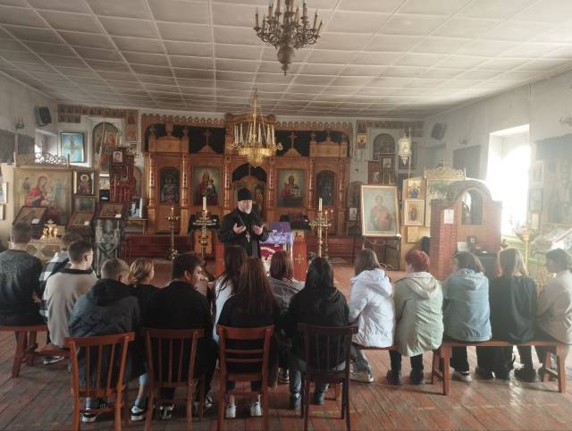В МБОУ СОШ №1, в рамках Димитриевских образовательных чтений, проведен круглый стол для учащихся 10-11 классов, совместно с клириком Покровского храма иереем Владимиром Щербаковым.