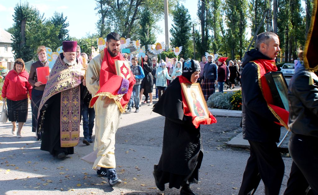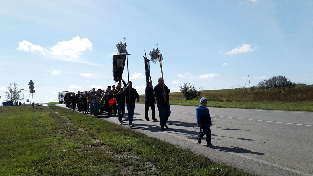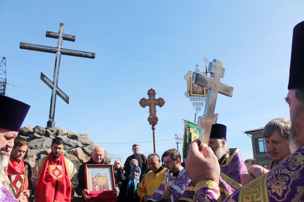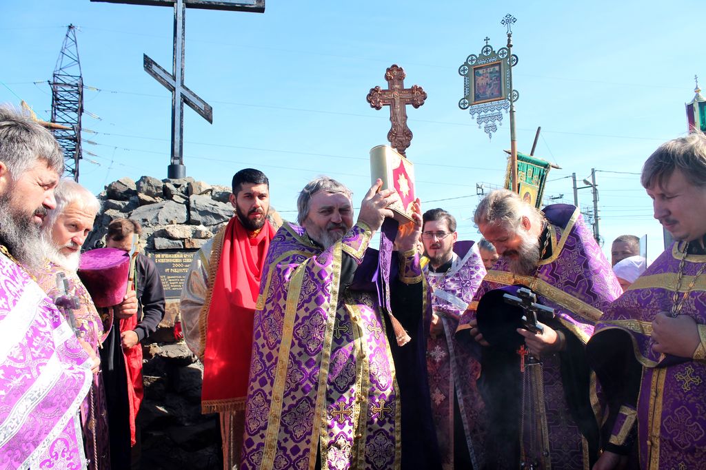 После Божественной литургии крестный ход начал свое движение от каждого храма Гуковского благочиния. В районе автовокзала произошла встреча и соединение всех православных, шествующих к поклонному кресту. Несмотря на сильный ветер и переменчивую погоду, участники хода, среди которых было много детей, пришли ко кресту радостными и счастливыми. Вместо усталости все ощущали прилив сил и воодушевление.
